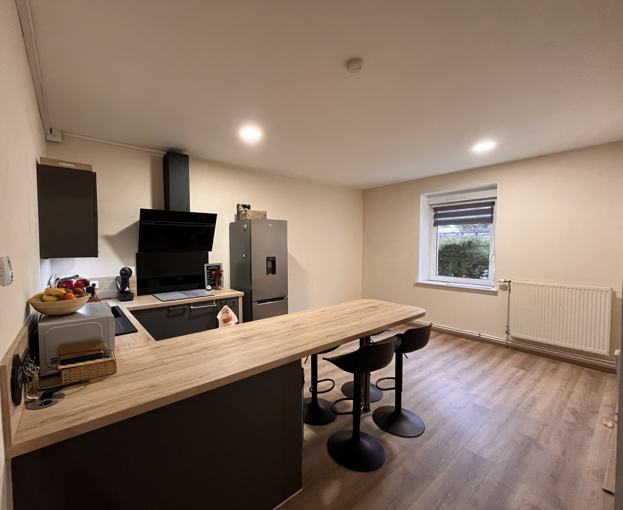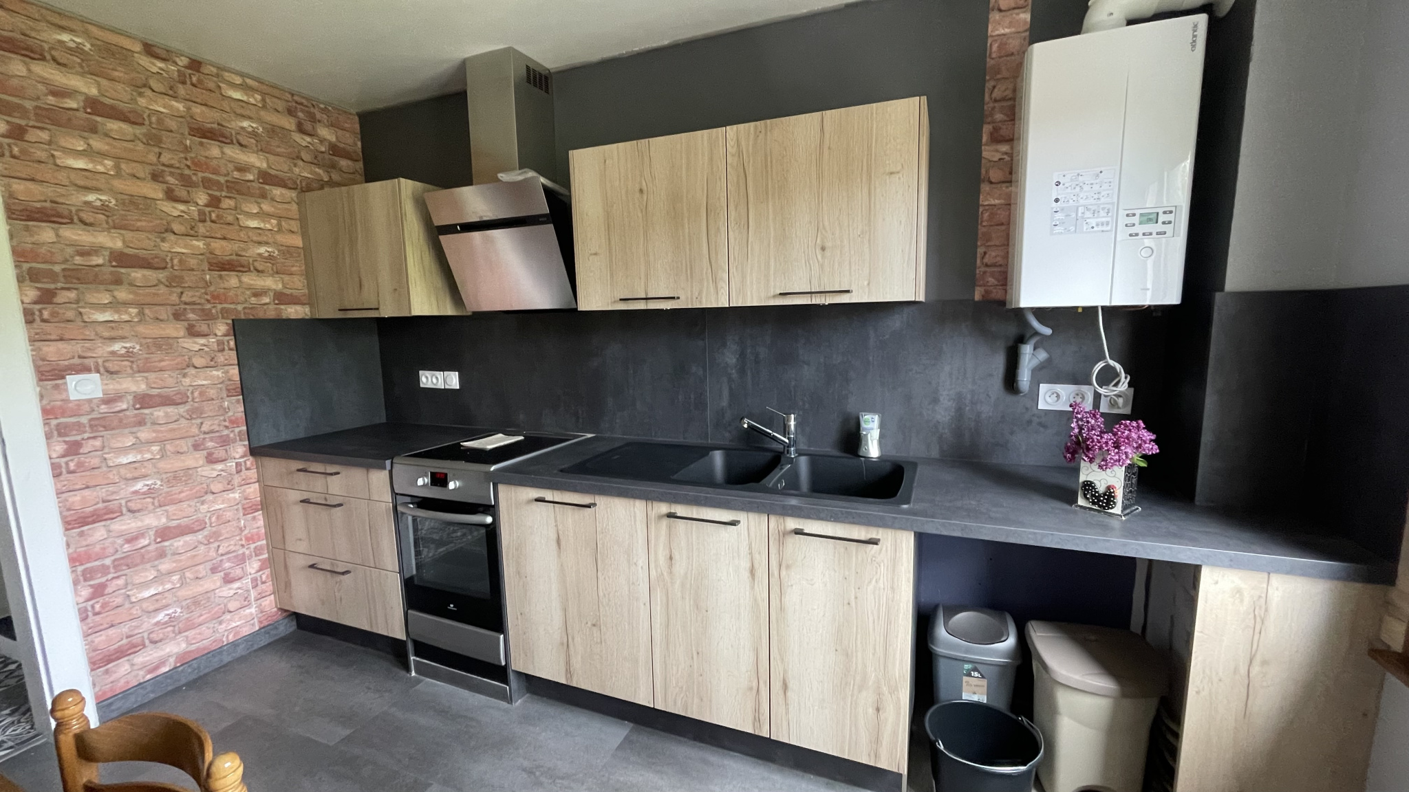EN EXCLUSIVITÉ SAINT AME - Appartement de type F3 situé au 1er étage comprenant : entrée / couloir de dégagement, wc, cuisine séparé (évier), salon-séjour, deux chambres, salle de douche. Garage. Parking. Chauffage électrique.