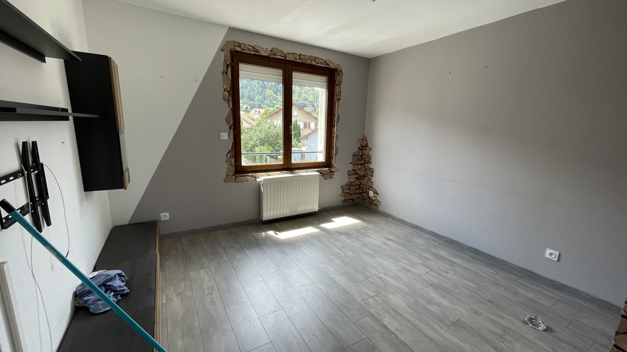 Au centre-ville de La Bresse, avec cave, bel appartement de type F4 en duplex au 1er étage.<BR>Composé d'une entrée, une cuisine équipée ouverte sur séjour, un cellier, de WC séparés et à l'étage d'une salle d'eau avec WC et de 3 cha...