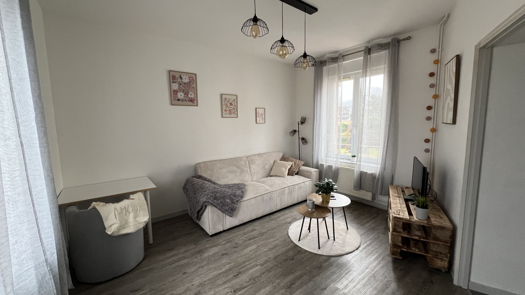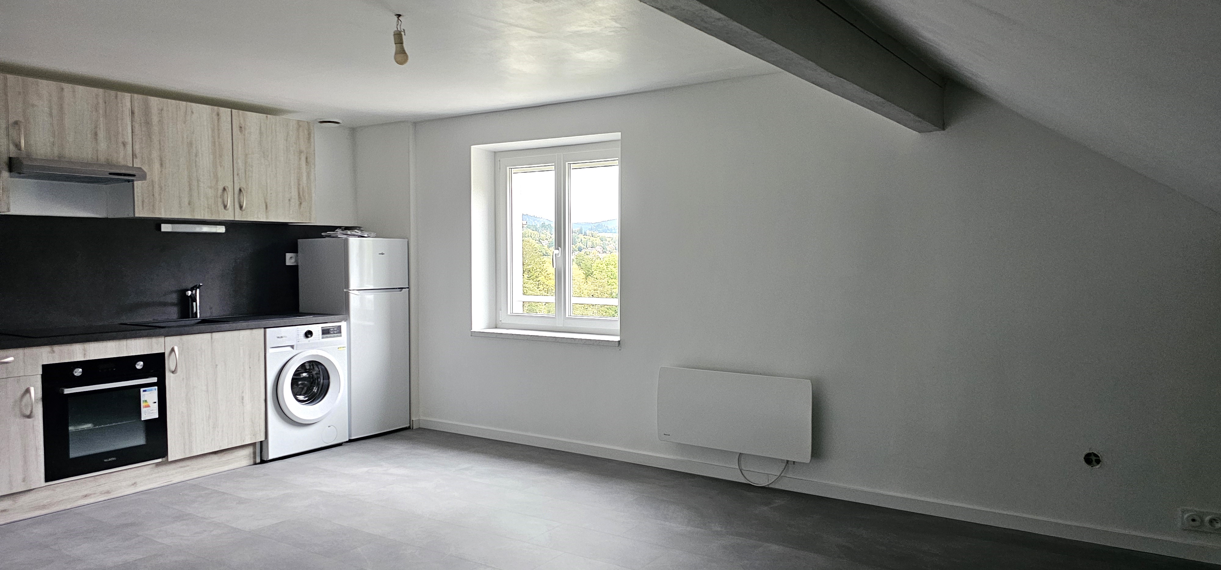 EN EXCLUSIVITÉ - REMIREMONT : Appartement de type F2 MEUBLÉ situé au 3ème étage se compose : entrée cuisine équipée ouverte sur le séjour (placard), salle de douche avec wc, 1 chambre. Chauffage électrique. Disponible fin octobre
