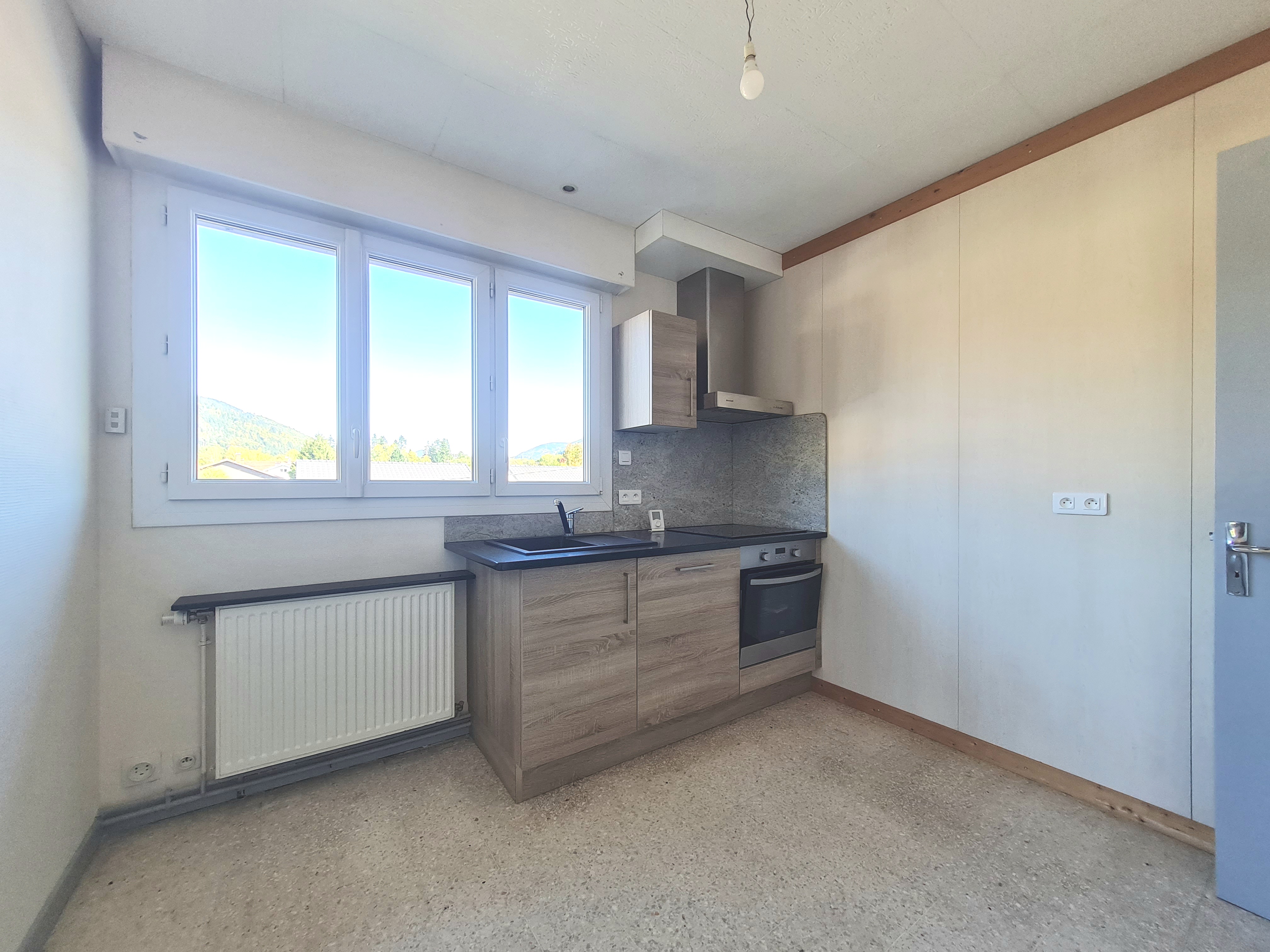 Proche centre ville, Rue de la Courtine à REMIREMONT, F3 sis au 1er étage avec CC gaz individuel et comprenant une entrée avec placard, cuisine meublée et ouverte sur partie séjour plein sud, 2 chambre dont une grande avec possibilité dressing, salle de bains ...