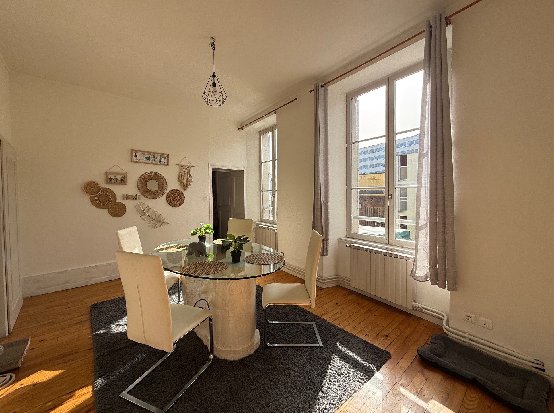 Situé au 1er étage d'un immeuble calme, en centre ville, cet appartement comprend: