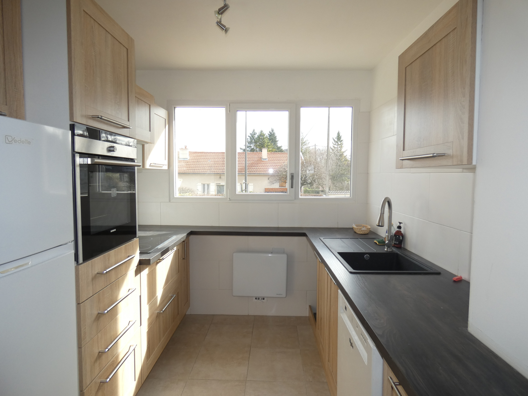 T3 Beaune, avenue de la Résistance, au RDC surélevé d'une copropriété avec parking. Appartement de 56,26 m2. Séjour avec cuisine ouverte aménagée et équipée (plaque de cuisson induction, four, hotte et réfrigérateur/congélateur), 2 chambres avec placards,...