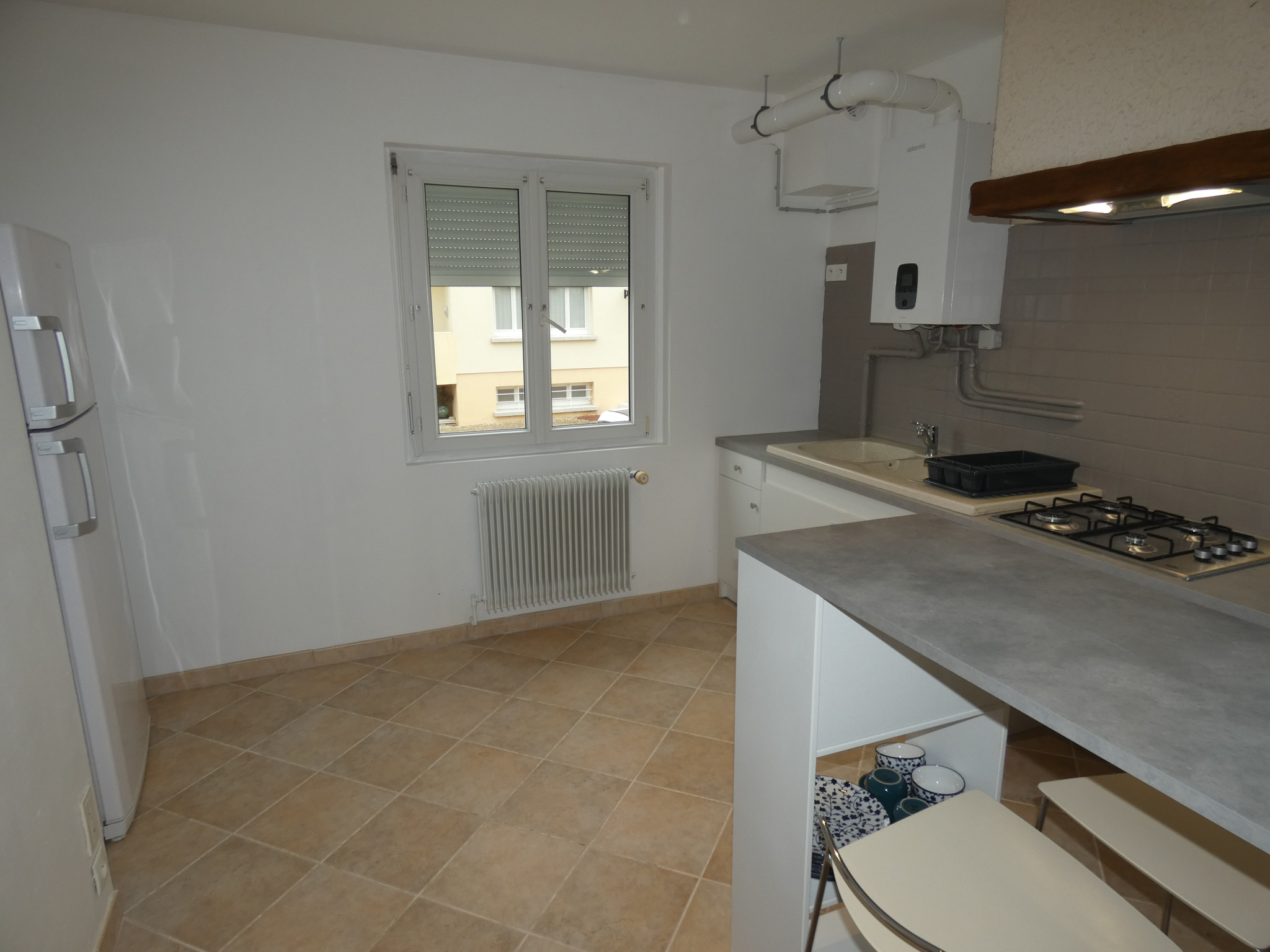 Auxerre, centre ville, appartement situé au 2ème étage, 3 pièces de 72.54m² comprenant entrée, séjour avec cuisine, deux chambres, une salle de bain, wc et un petit balcon.