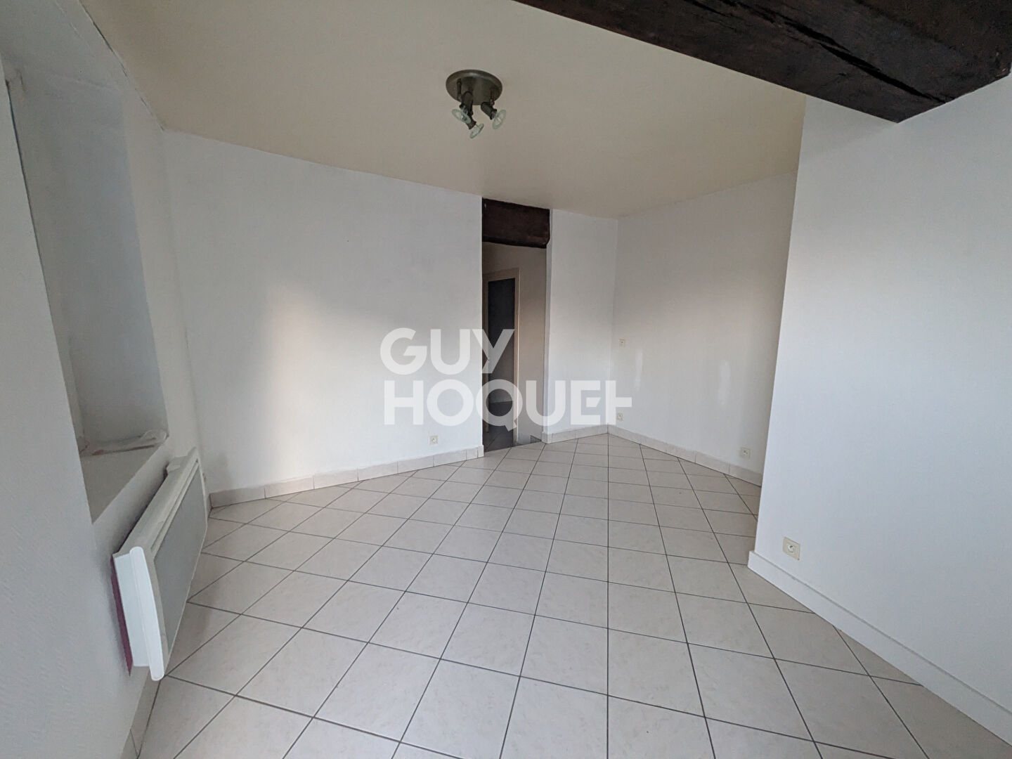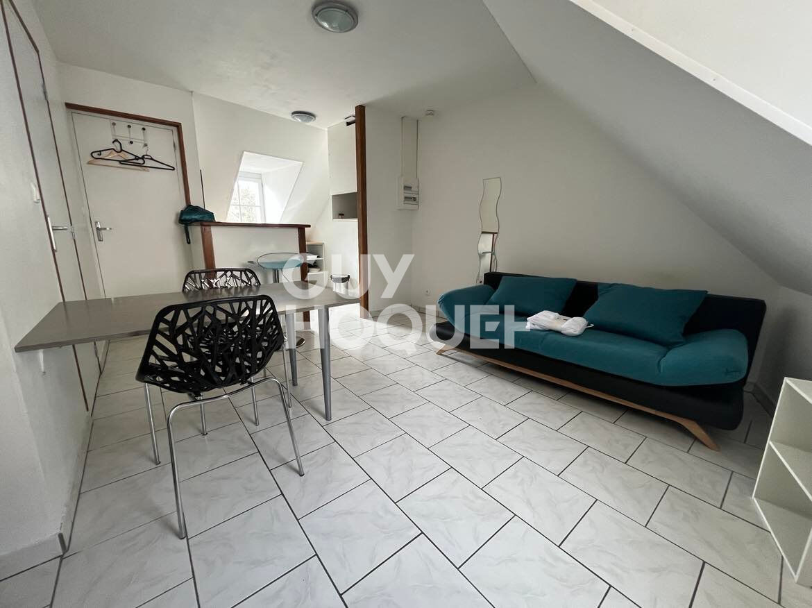 Appartement mansardé en centre ville. 1er niveau : entrée, pièce de vie, cuisine, salle d'eau wc, 2ème niveau: mezzanine offrant espace nuit. Disponible le 17/04/2026