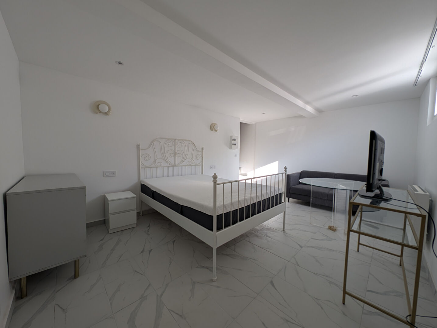 Dans une maison divisée en 2 appartements, studio neuf en entresol loué meublé avec cuisine aménagée et équipée et une salle d'eau avec wc.