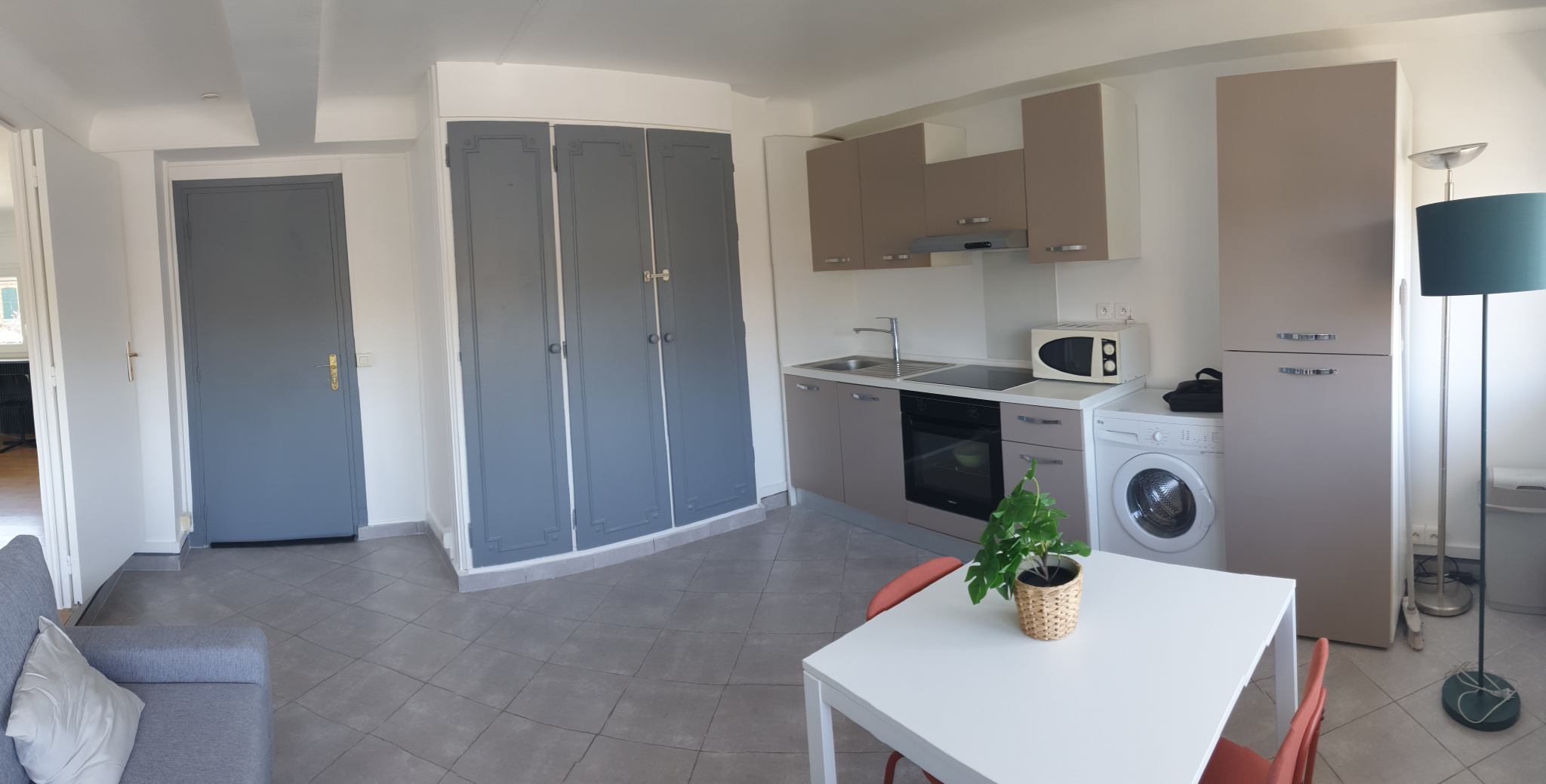 Il se compose d'une entrée avec placard, une cuisine équipée aménagée (avec plaque / hotte / four / micro-ondes / r...