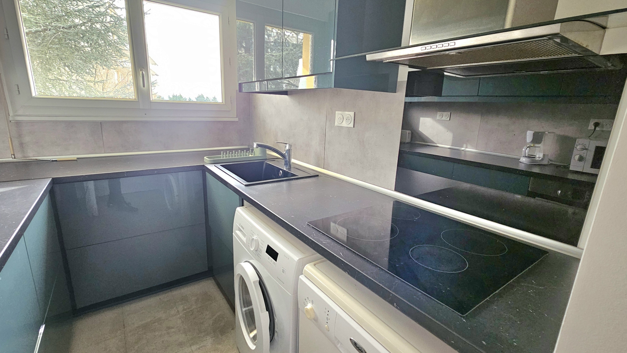 Entrée avec placard aménagé, séjour plein Sud avec vue dégagée, cuisine aménagée e...