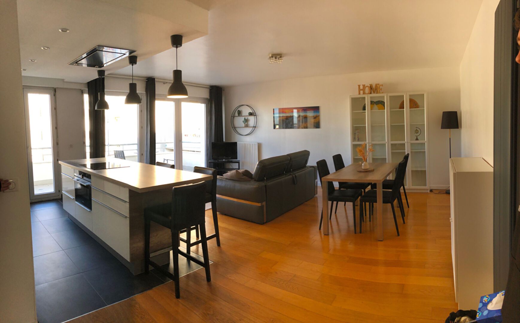 Dans Résidence récente avec ASCENSEUR, au DERNIER ETAGE, Beau Duplex de 129m² au sol (99.59m² Loi Carrez) avec 2 BALCONS : Entrée avec placard, Beau Séjour avec parquet donnant sur Balcon exposé Sud, Cuisine américaine équipé...
