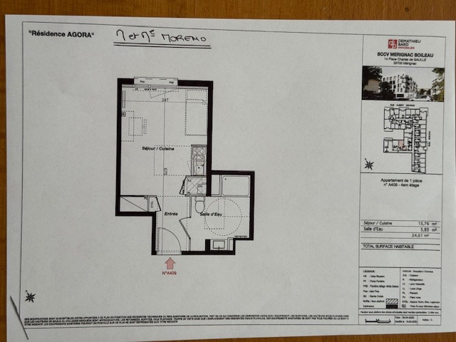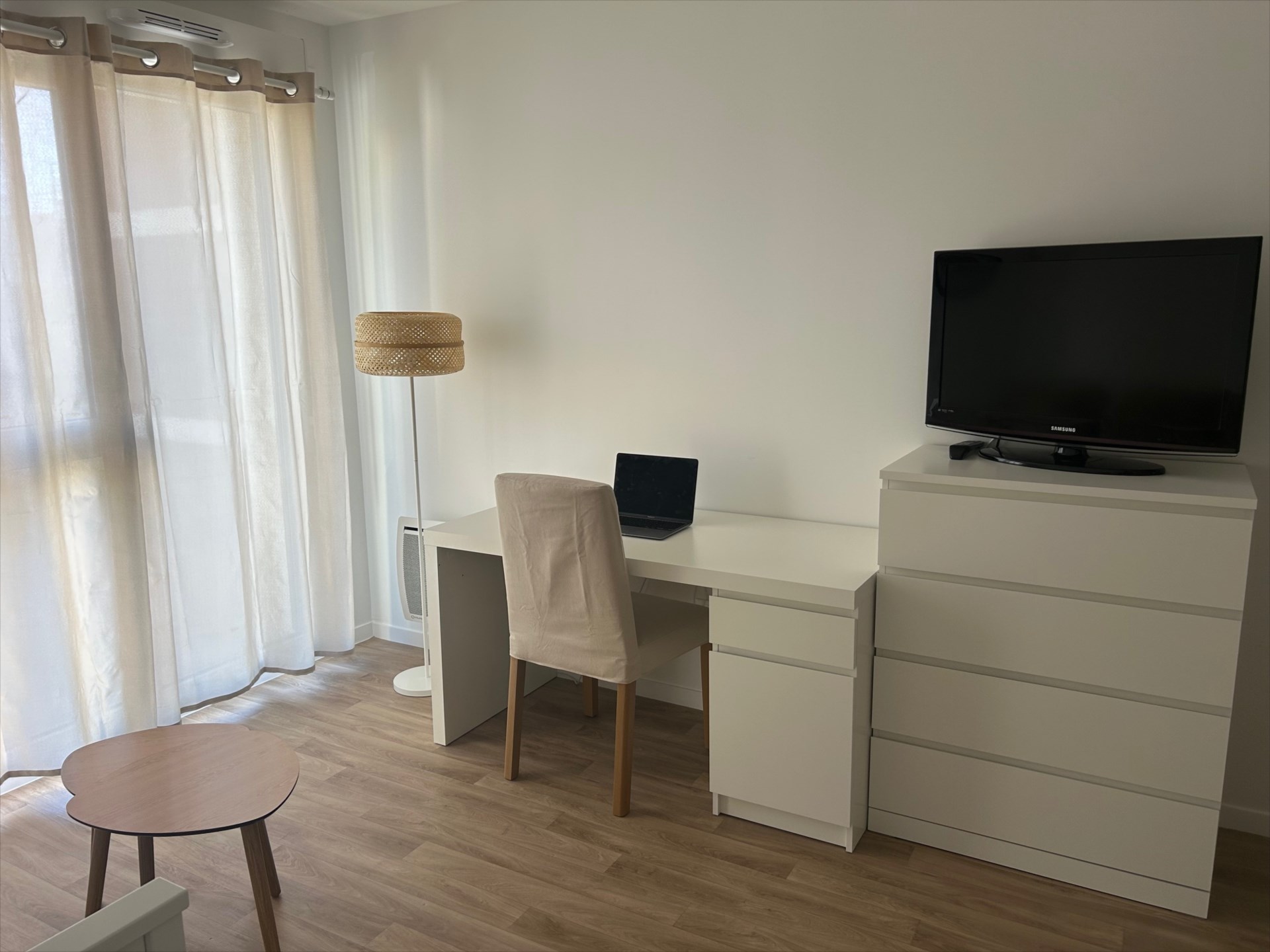Mérignac Centre - Appartement neuf - Studio meublé de 23 m² comprenant : <BR>Une pièce principale fonctionnelle avec coin nuit et espace bureau, une cuisine toute équipée (plaques, frigo, micro-ondes, rangements), une salle d'eau moderne avec douc...