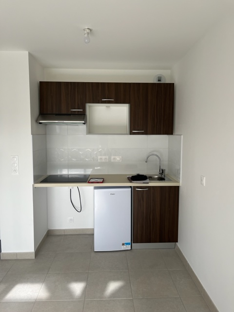 Studio en bon état idéalement situé à 5 mns à pied de l'arrêt de Tram Forum et proche Centre Talence - Il comprend une pièce principale avec un placard aménagé, une kitchenette avec plaques vitrocéramiques, régrigérateur top, meuble sous évier, une salle ...