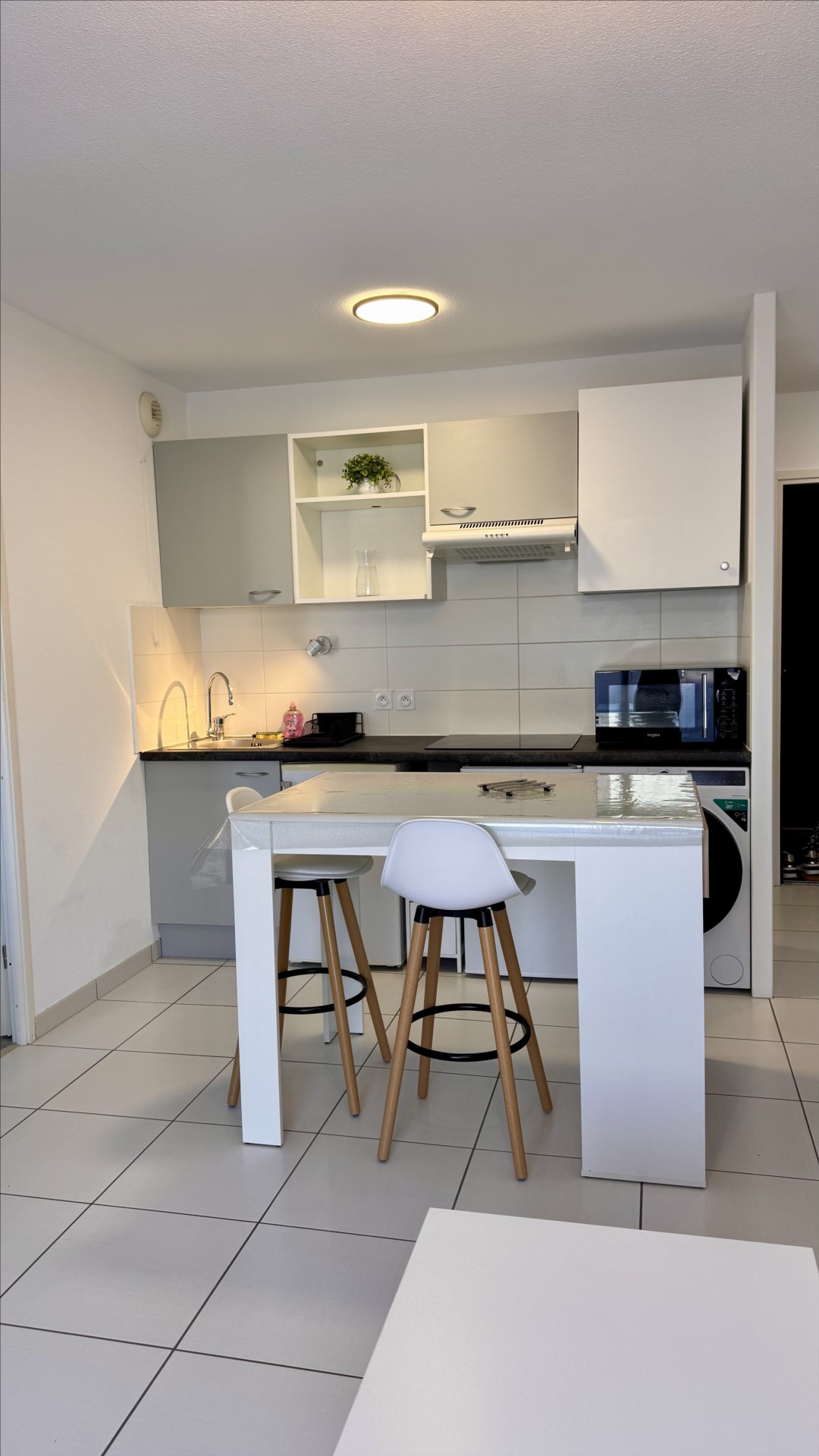 A 200 m de l'arrêt de Tram Noutary, proche Bd Jean-Jacques Bosc et Pont François Mitterrand - Dans résidence avec belles prestations, appartement 2 pièces au 1er étage avec balcon comprenant un séjour ouvert avec cuisine aménagée et équipée (meubles haut ...