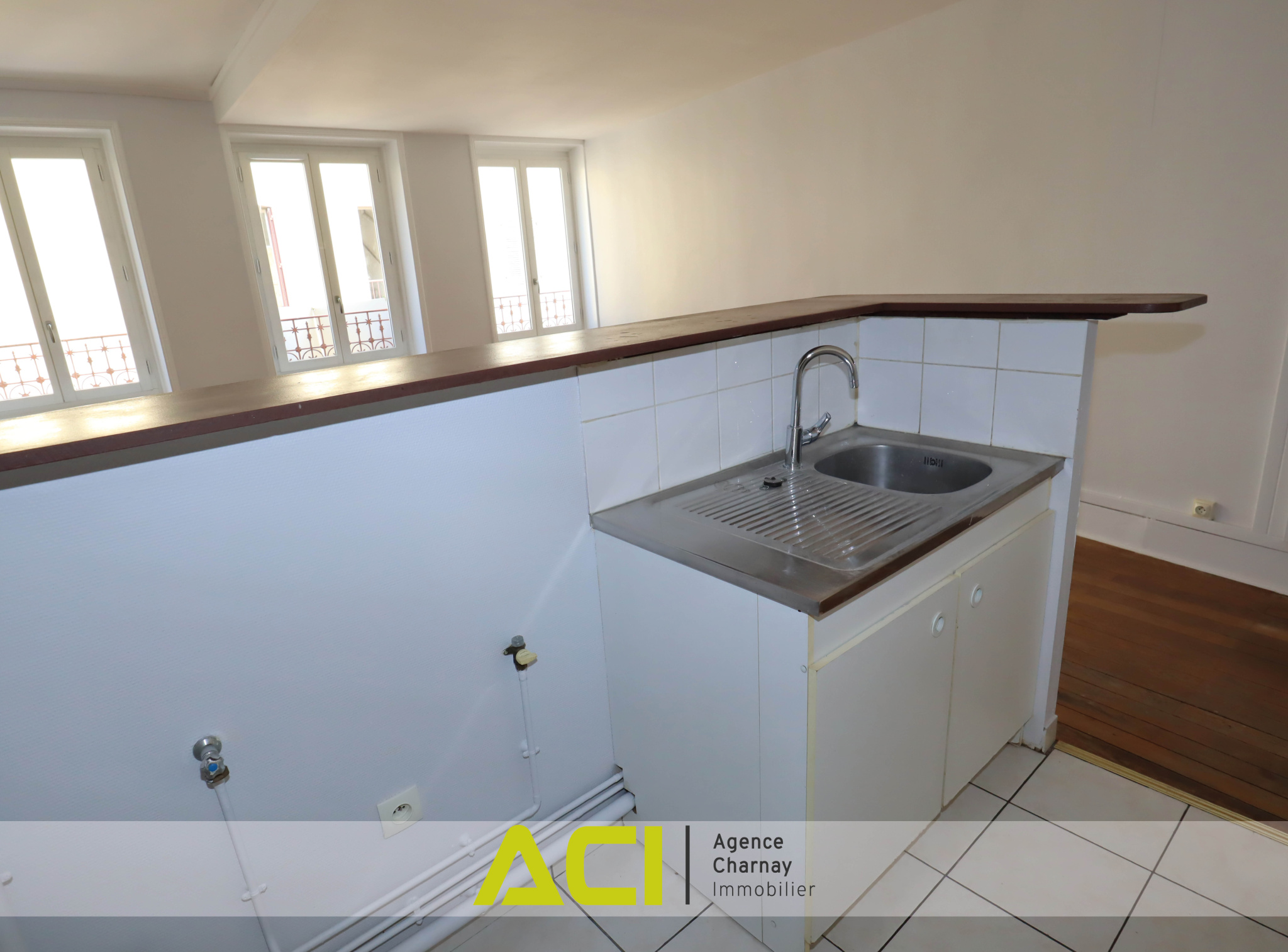 MACON NORD - Sur la commune de SAINT ALBAIN: Accessible par une courette, studio comprenant une pièce principale avec kitchenette équipée (frigo + plaques de cuisson), une salle de bains et wc séparés.