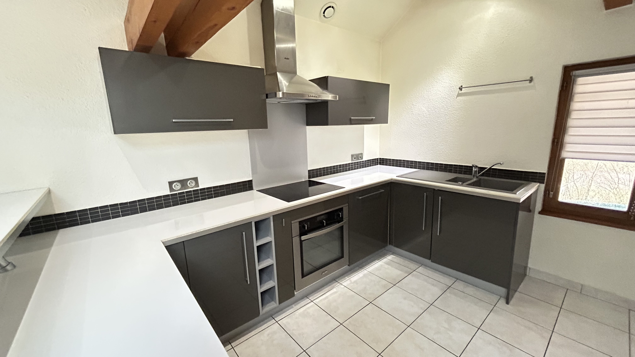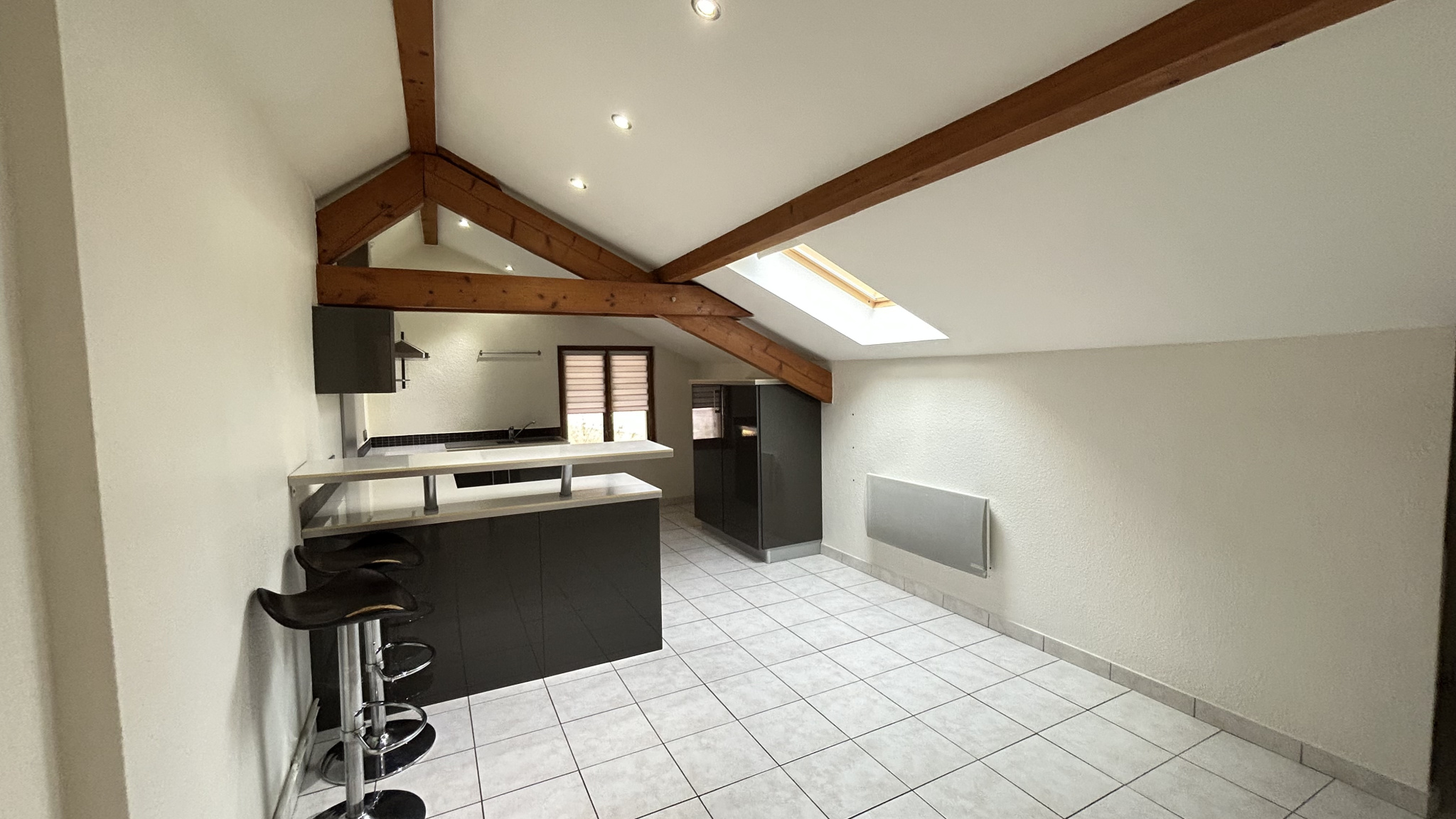 EN EXCLUSIVITÉ - SAINT-NABORD - Grand appartement F4 'meublé' en duplex avec entrée indépendante comprenant : Entrée / dégagement au rez-de-chaussée. A l'étage : dégagement / mezzanine, cuisine équipée-intégrée (four + plaque de cuisson + hotte ...