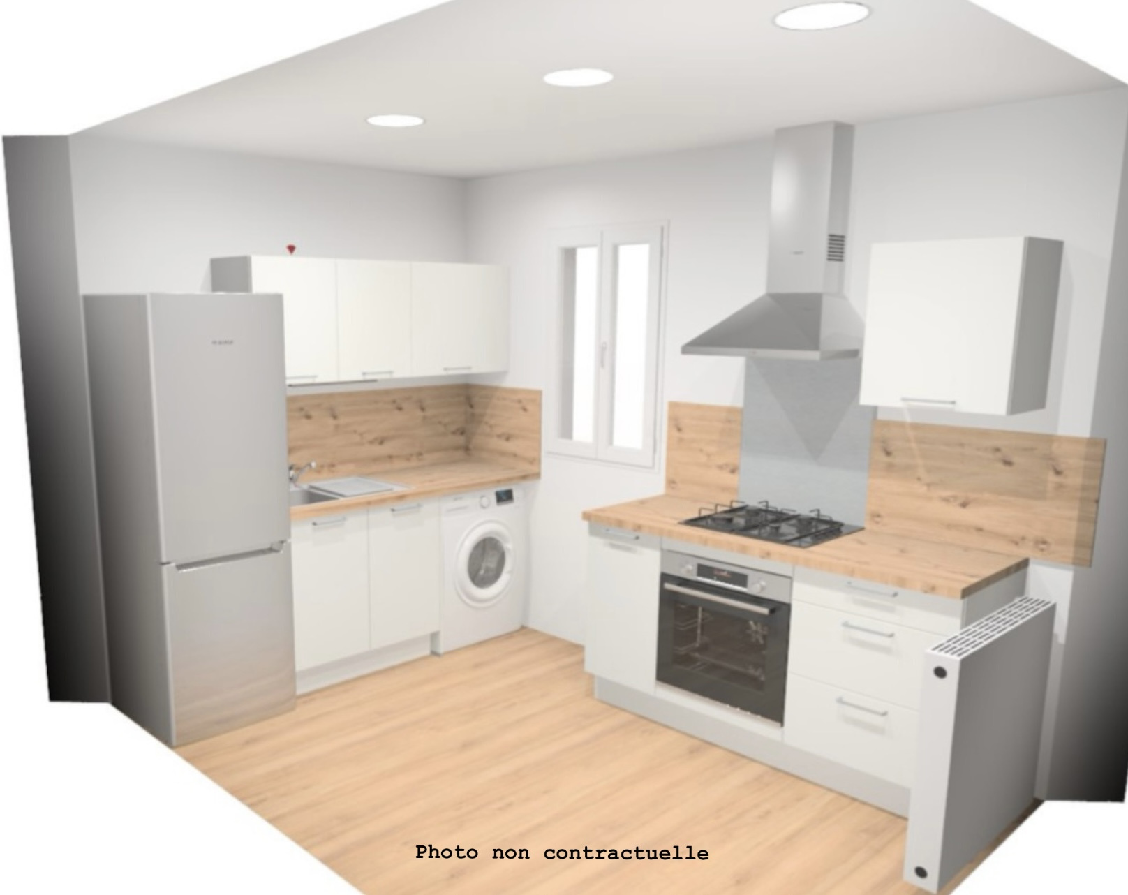 EN EXCLUSIVITE - REMIREMONT - Rue des Brasseries : Appartement F2 situé au 1er étage : entrée sur cuisine (évier + hotte + meuble de rangement), séjour, chambre, salle de douche avec WC. Chauffage individuel au gaz de ville.