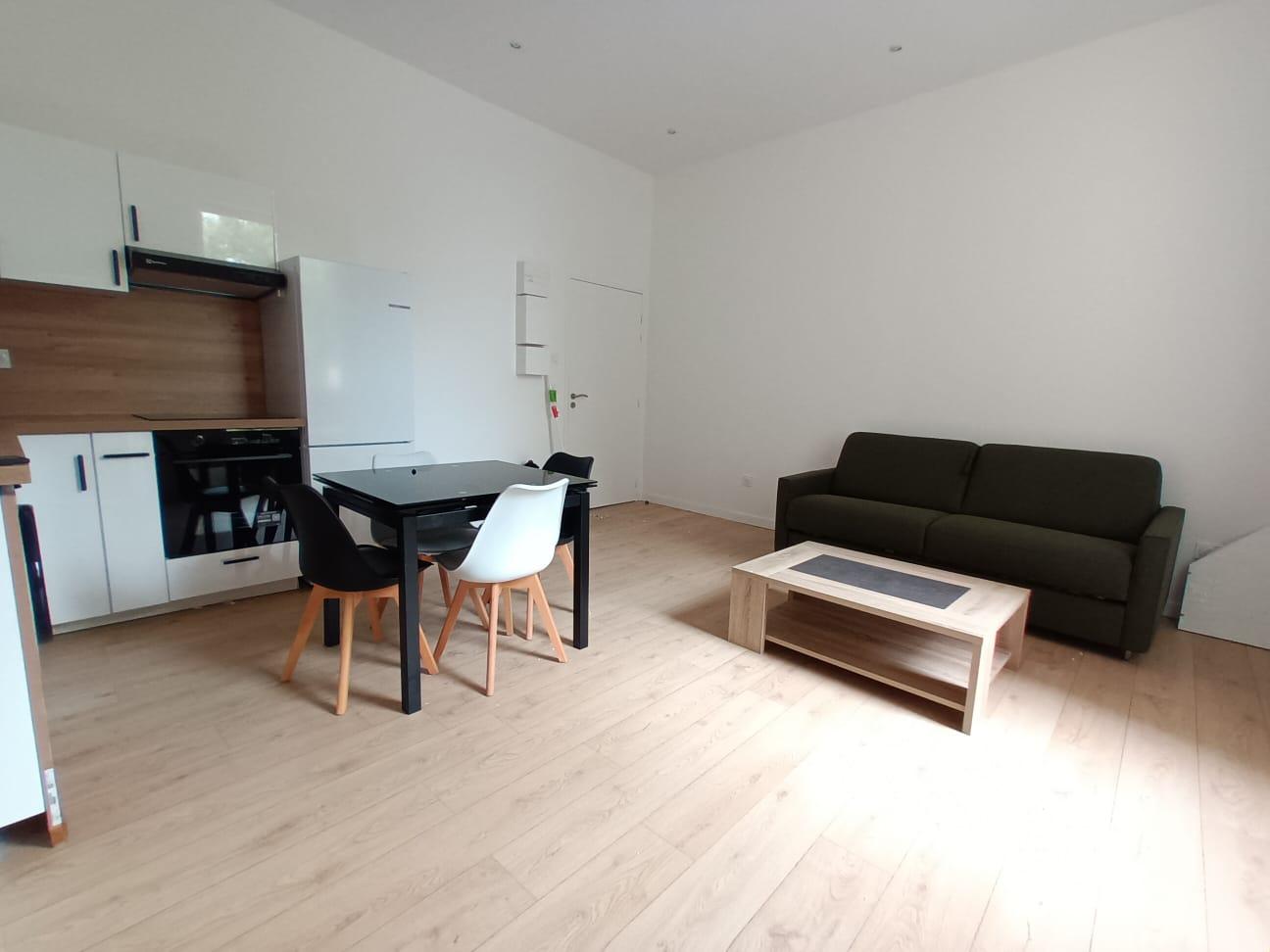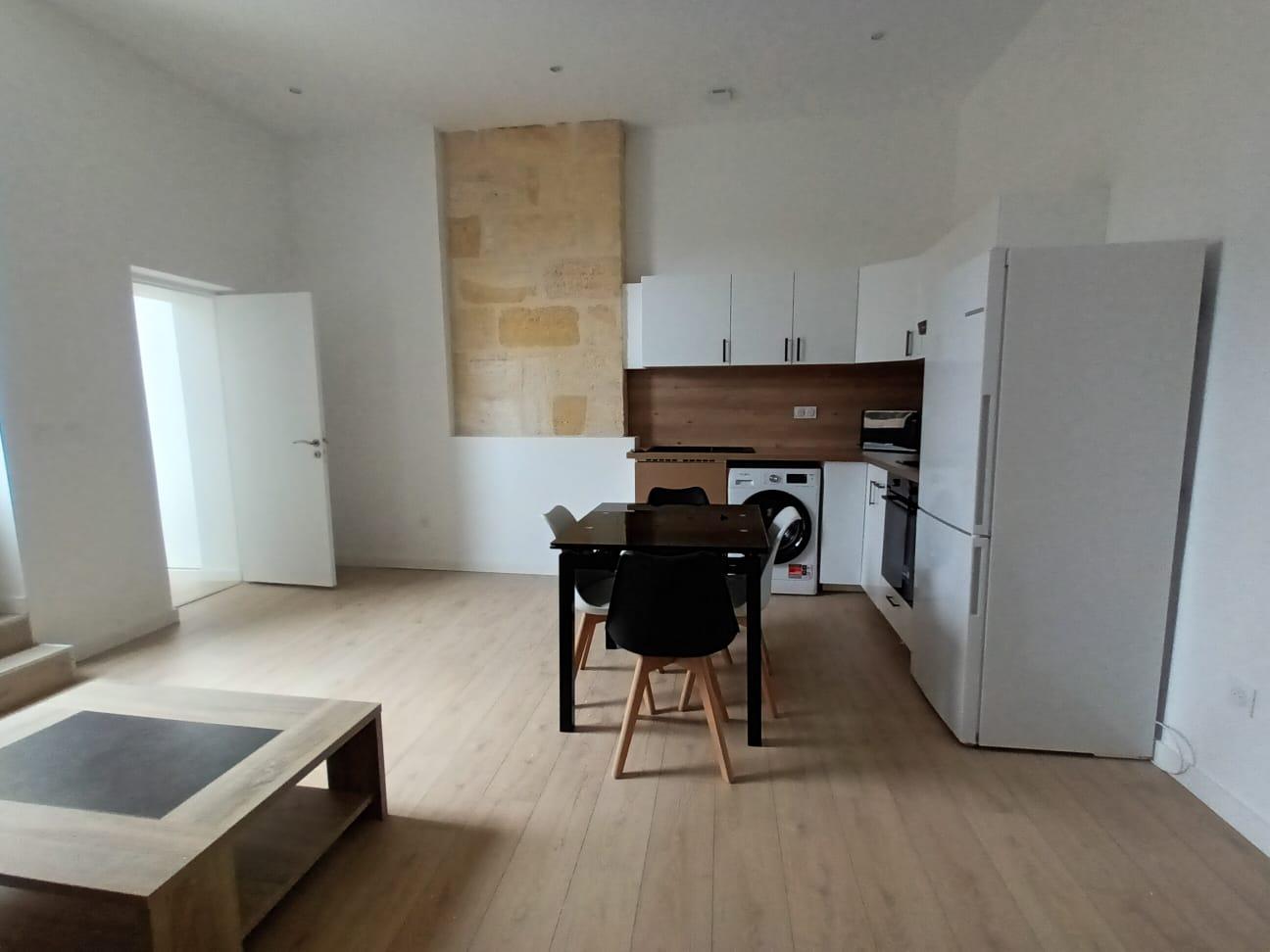 BX St Michel-Ste Croix - A Bordeaux, dans le quartier St Michel/Ste Croix loue T2 meublé de 40m² au RDC d'un immeuble pierre. Appartement traversant composé d'un entrée, d'un séjour avec coin kitchenette équipée (plaques, frigo top, micro-ondes,...