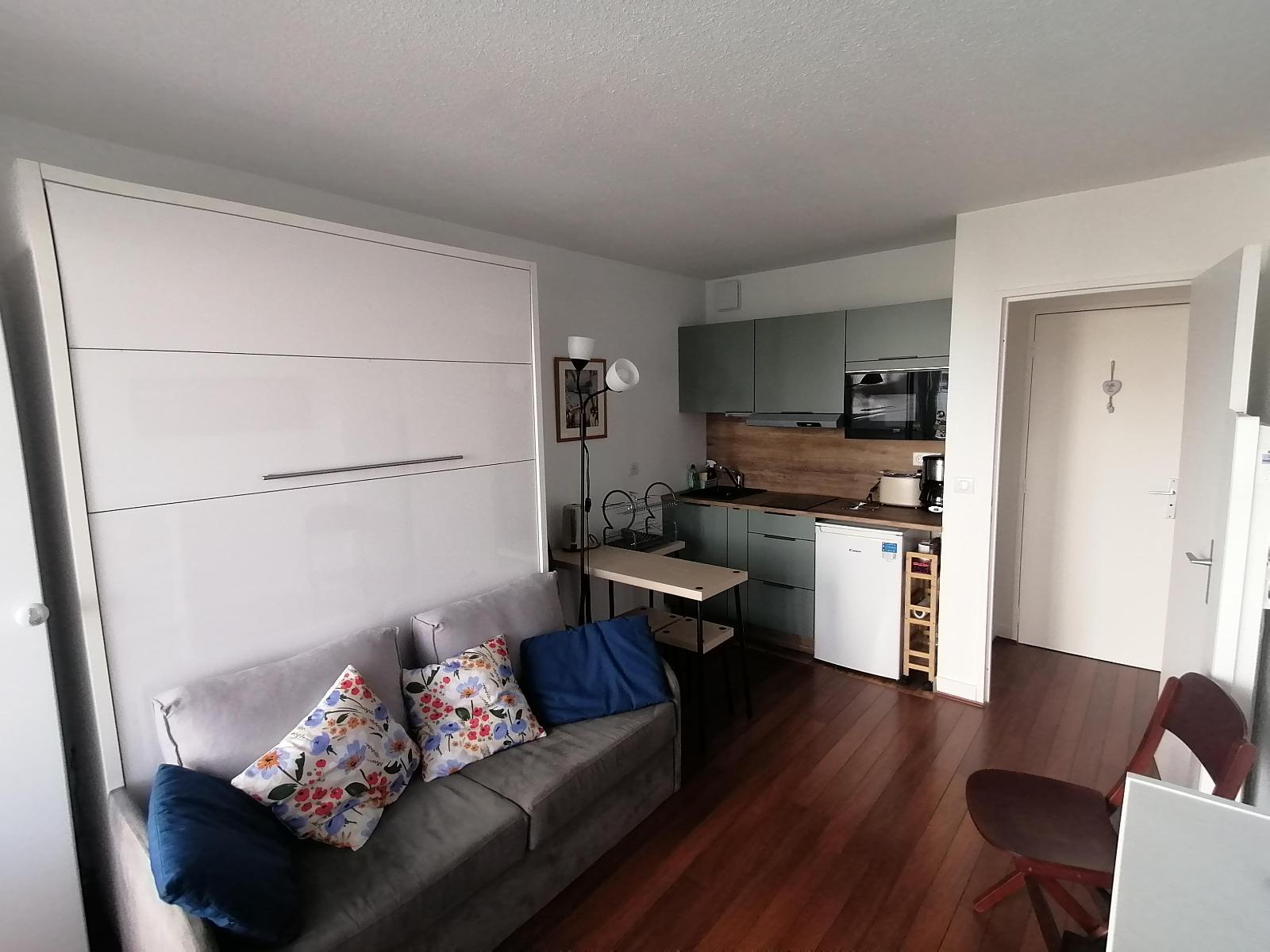 BX St Genès - A Bordeaux, à proximité de la Barrière St Genès, loue grand studio meublé de 38.50m² au RDC d'un petit immeuble pierre. Appartement donnant côté cour composé d'un séjour avec coin kitchenette équipée (plaques, frigo top, micro-ondes, va...
