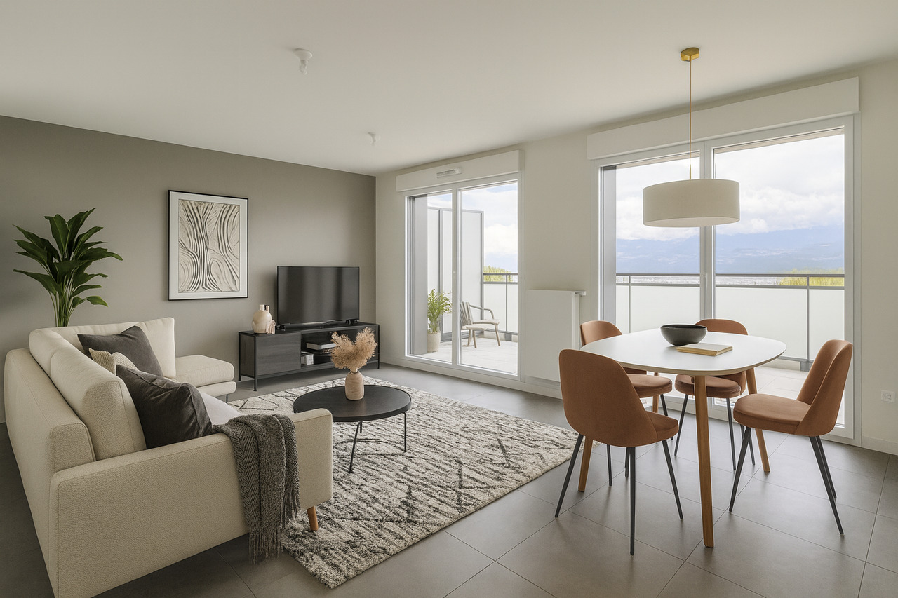 SEYSSINS (38180) Sur les hauteurs, à louer appartement T3 de 68 m², neuf, situé au 1er étage sur 2, avec ascenseur, et bénéficiant d'une terrasse de 15 m² avec vue panoramique