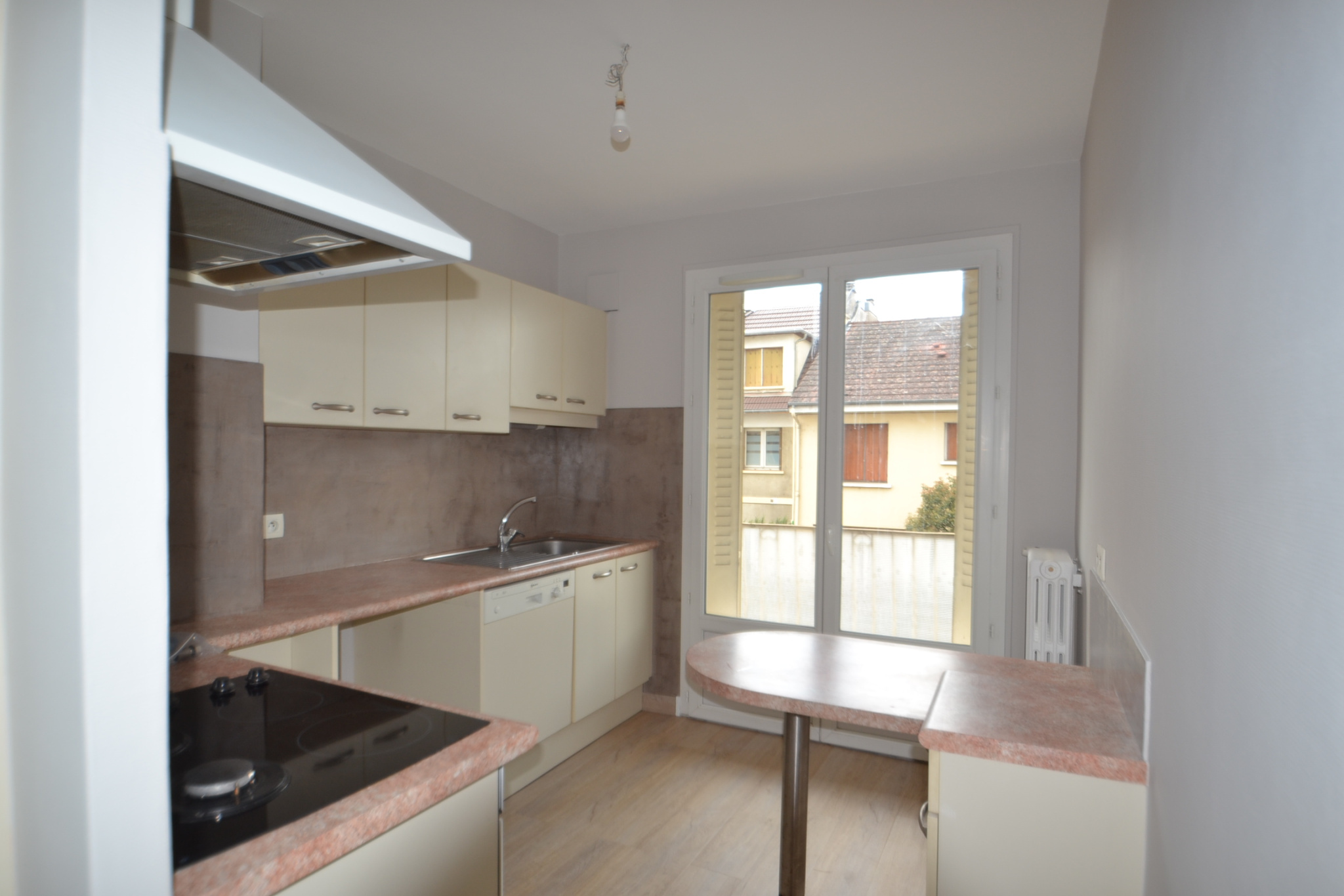 Appartement de type F2 de 46 m2 au 1er étage comprenant une cuisine ouverte sur séjour (18,46m2) chambre, salle d'eau, wc, chauffage gaz de ville, libre de suite.