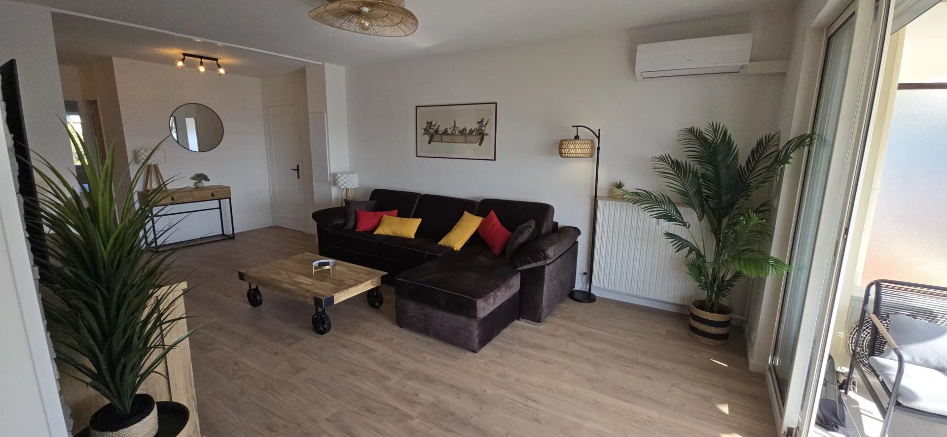 Quartier Les Maurettes, bel appartement 3 pièces de 65 m², traversant Sud / Nord, meublé, au 3ème étage sans ascenseur, d'une résidence bien tenue.