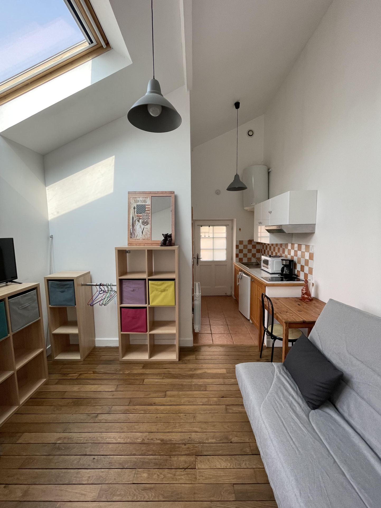 ORLEANS, 57 RUE SAINT MARCEAU - Studio MEUBLÉ de 17m2 au calme en fond de cour, comprenant : pièce principale avec coin cuisine équipée (2 plaques vitrocéramiques, micro-onde, réfrigérateur, hotte), salle d'eau avec WC. Buanderie avec machine à laver. Cou...