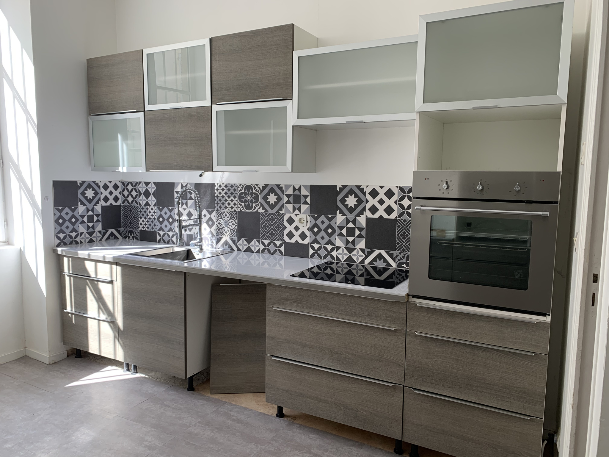 ORLEANS, QUARTIER DUNOIS, 18 BIS RUE DE LAHIRE, F3 DUPLEX de 84 m2 comprenant au RDC: Entrée, séjour avec cuisine ouverte aménagée et équipée (plaques hotte), WC. A l'étage: palier, deux chambres, salle de bains, WC. Chauffage individuel électrique. Libre...