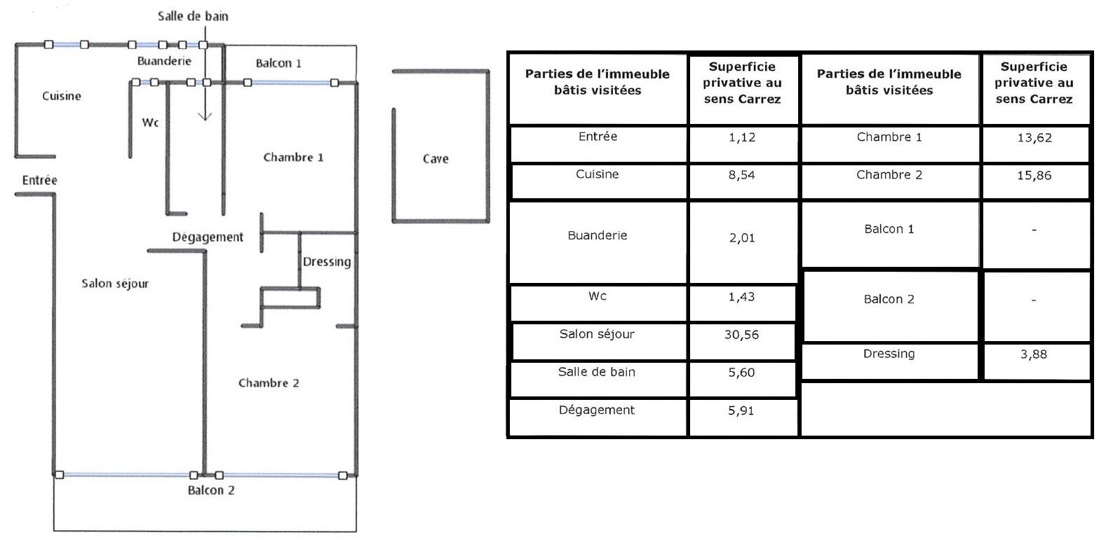 1/ Surface plateau de 156.56 m² avec :