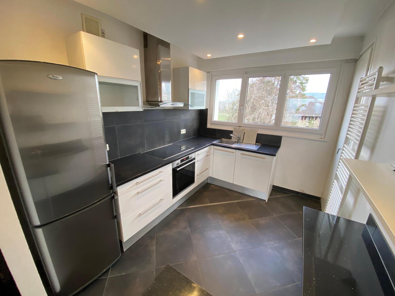 Rare à la location ! - 6, Square Aristide Briand à Thonon, centre ville, à 5 minutes de la gare CEVA et proche embarcadère CGN, spacieux appartement T2 de 64.80 m² traversant au 3ème étage (sans ascenseur) et entièrement repeint comprenant : Entrée, grand séjo...