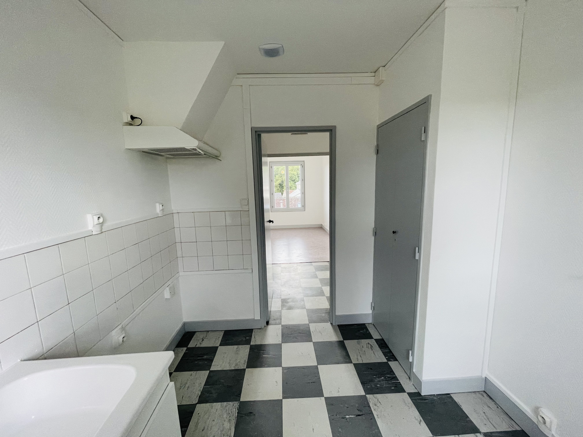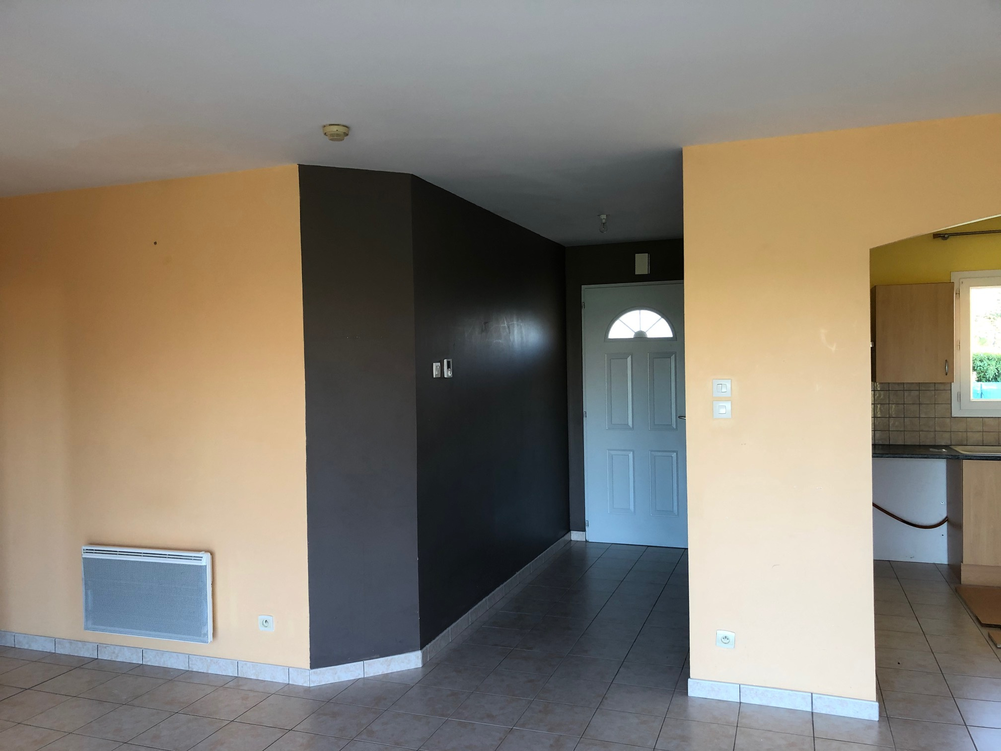 Maison de ville avec au RDC cuisine équipée, séjour, débarras, salle d'eau avec WC. À l'étage : palier, une chambre, dressing. Grenier