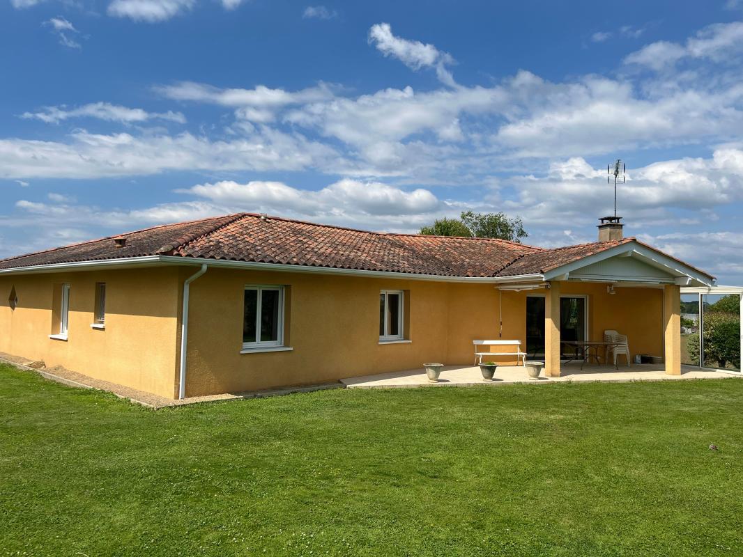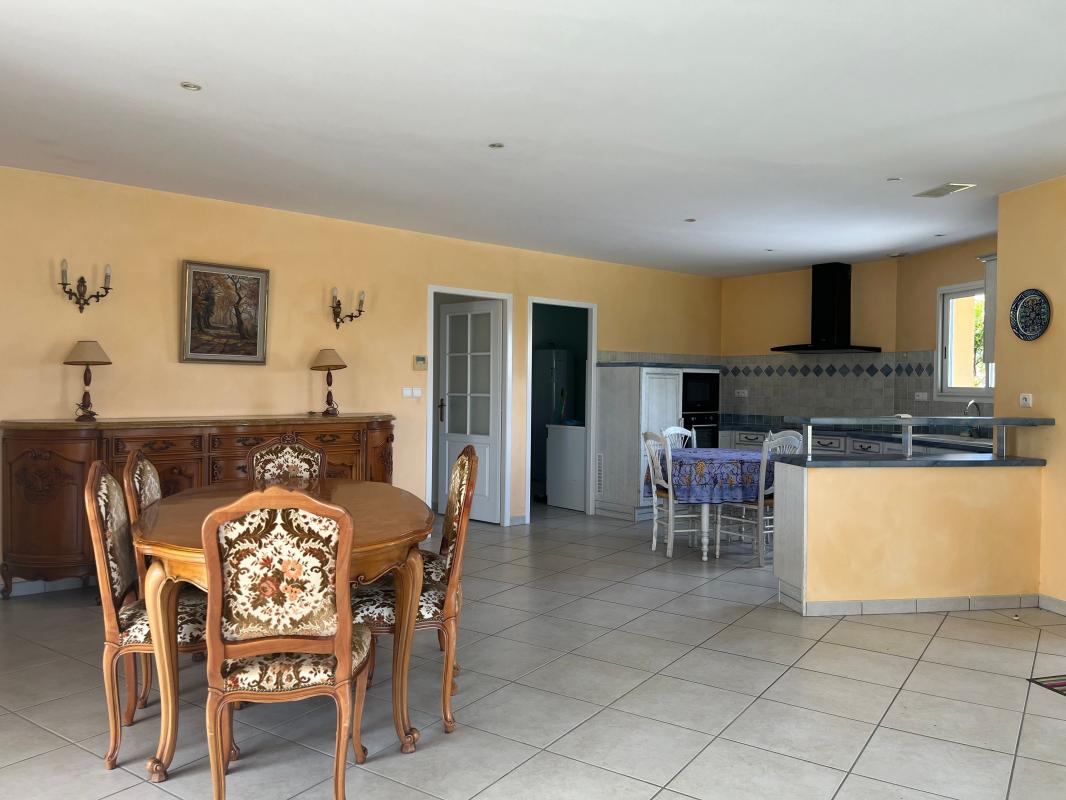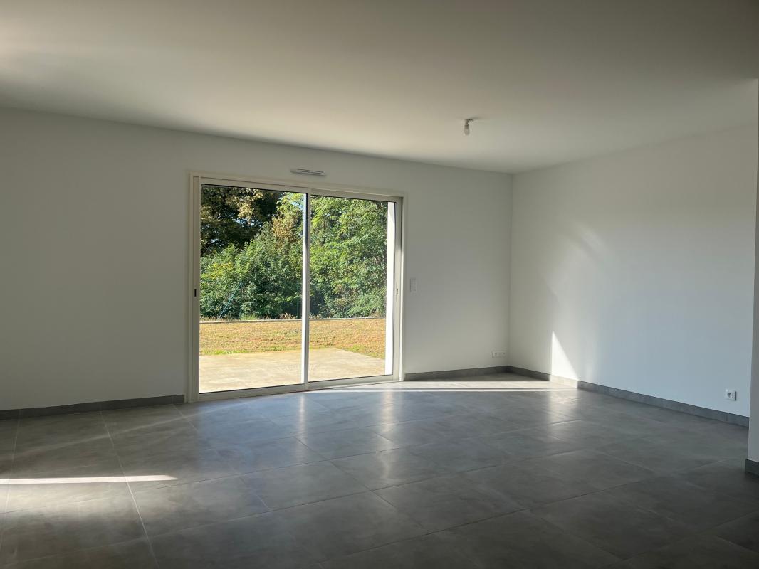 Maison contemporaine individuelle à louer avec terrasse, construite en 2006, elle offre un grand séjour, cuisine aménagée et équipée, 3 chambres avec placards, Cellier, Salle d'eau, WC et une superficie de 121,8m². Abri voitures et jardin non clôturé.