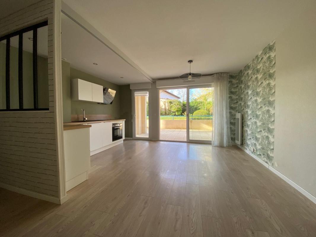 Charmant appartement T2 en rez-de-chaussée de 46,34 m² à louer à Dax, dans une Résidence calme. Il propose une chambre, un séjour lumineux ouvrant sur une grande terrasse , cuisine aménagée et salle de bains fonctionnelle ainsi qu'une place de parking pri...