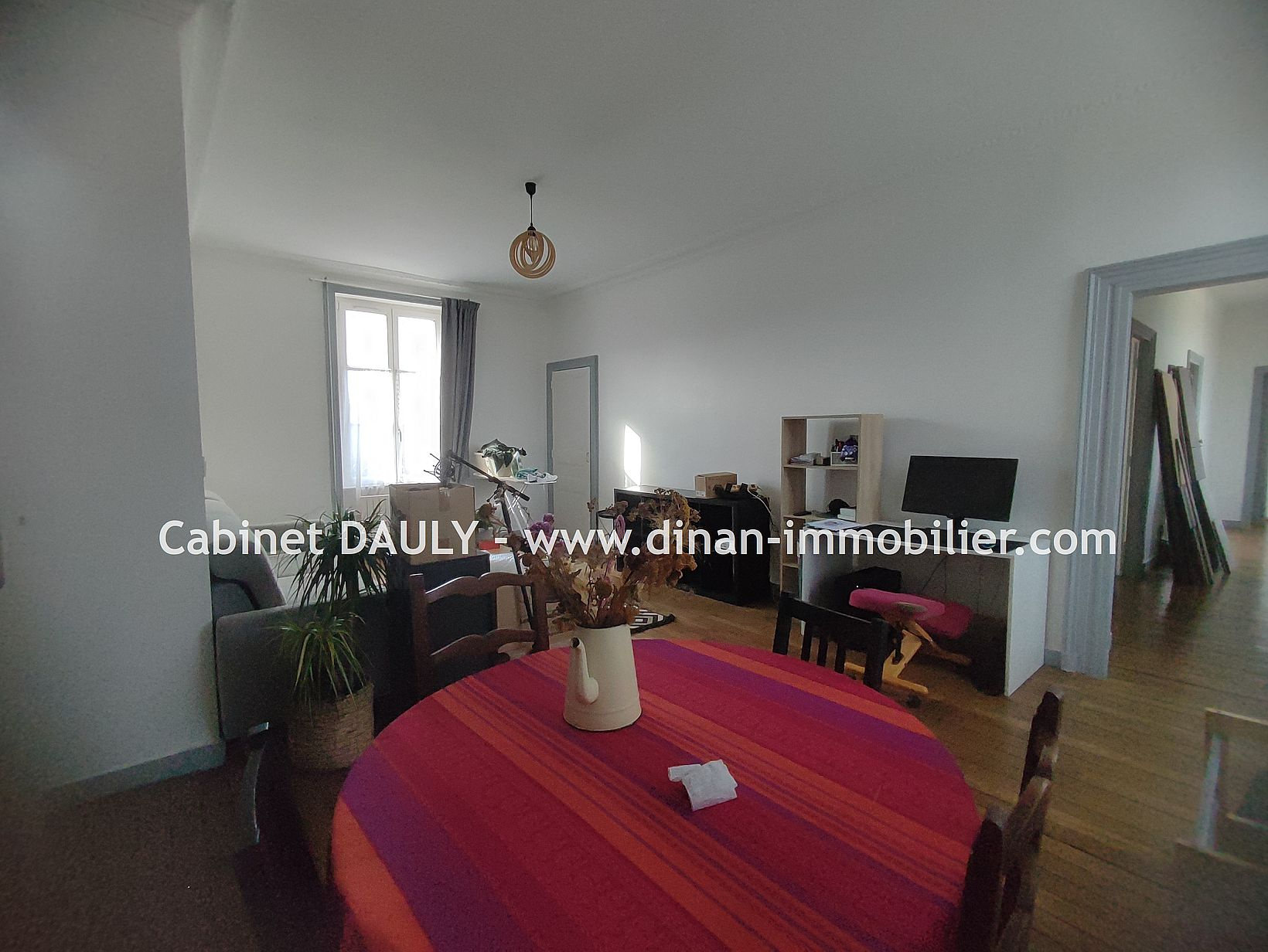 DINAN Centre Ville - Appartement T4 de 113m2 au 2ème étage comprenant un salon - séjour, une cuisine aménagée et équipée (four, plaque, et hotte), un dégagement déservant 3 chambres, une salle de bain, et un toilette. Chauffage gaz de ville. LIBRE le 3 Décembr...