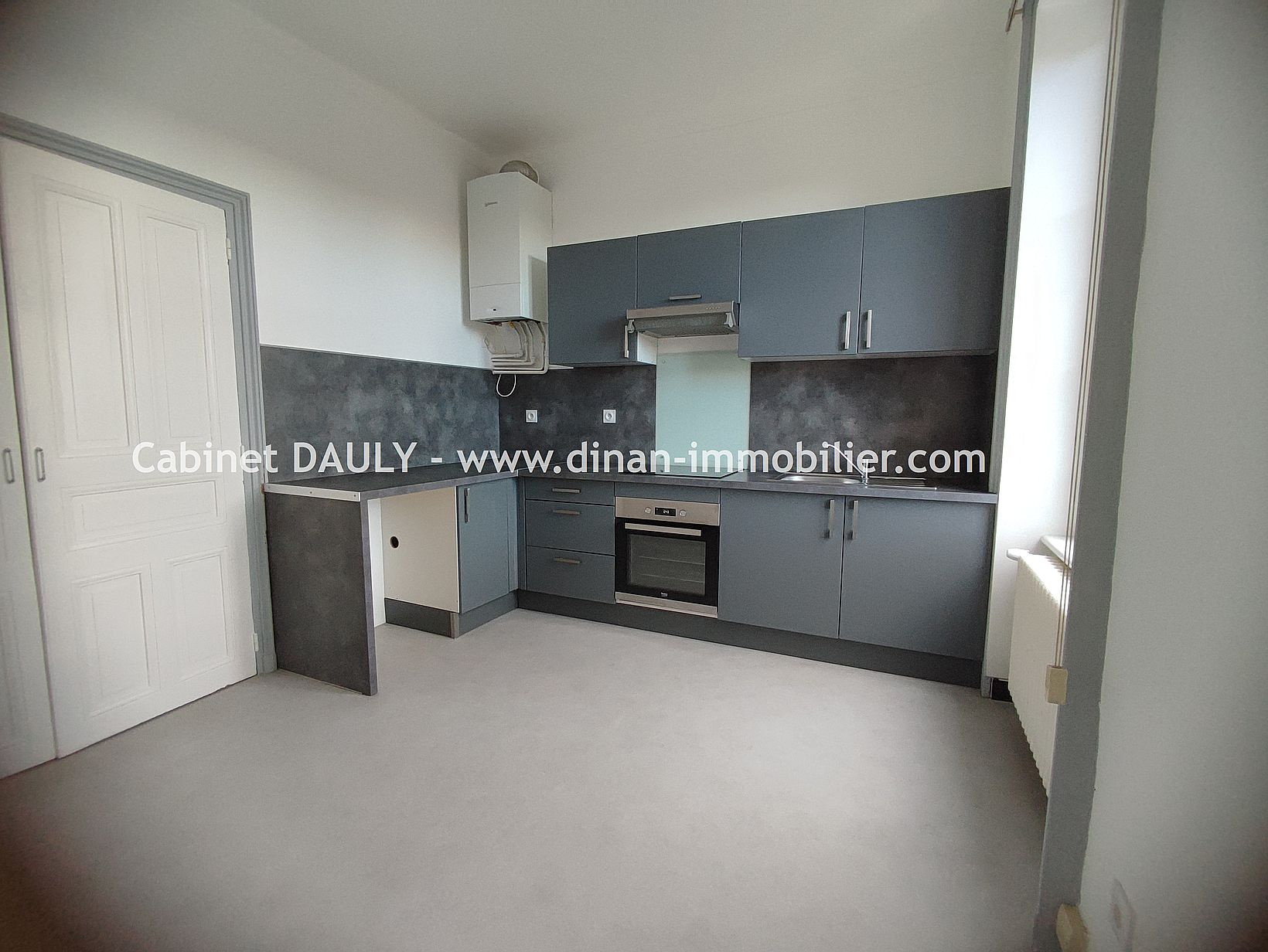 DINAN Centre Ville - Appartement au RDC de type 3 de 75m2 comprenant une entrée, une pièce de vie avec coin cuisine aménagé et équipé (four, plaque, et hotte), deux chambres, une salle d'eau, et un WC. Chauffage électrique individuel. Eau et électricité i...