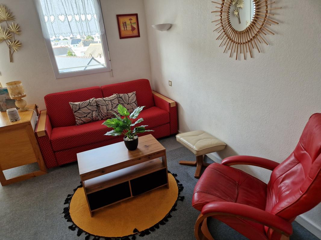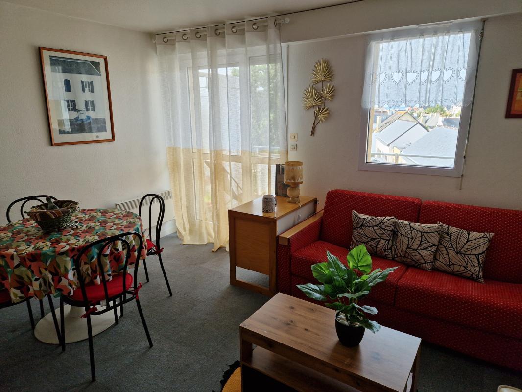 Ce studio de 23m² est disponible à la location à l'année sur la presqu'île de Quiberon. Idéalement agencé, il offre une pièce de vie lumineuse comprenant un espace salon avec canapé-lit et un coin repas. La kitchenette est entièrement équipée (plaque...