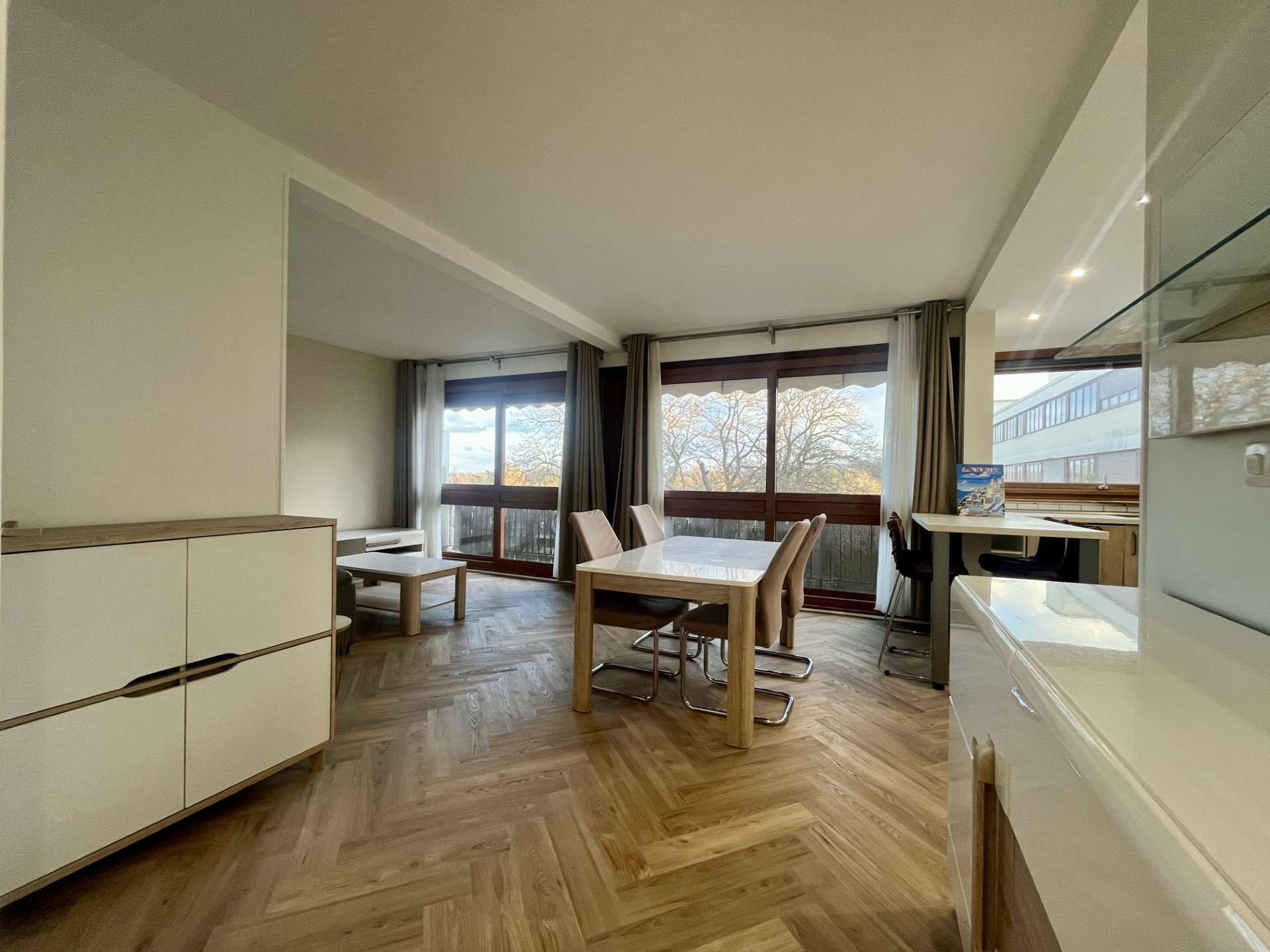LA CELLE SAINT CLOUD Résidence Elysée 2 Appartement de 3 pièces, refait à neuf, traversant, entièrement meublé d'une superficie de 73.26m2 carrez donnant sur un balcon filant avec vue dégagée, composé d'une entrée, séjour 24.87m2, cuisine aménagé...