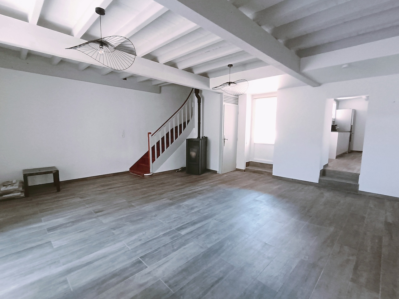 Maison individuelle composée d'un séjour avec insert, cuisine aménagée, salle d'eau avec toilettes, grand cellier.