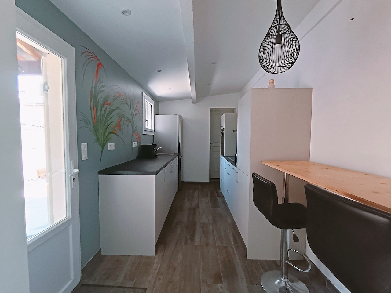 Maison sur deux niveaux composée au rez-de-chaussée d'un salon / séjour, une cuisine séparée aménagée, une chambre et une salle d'eau.