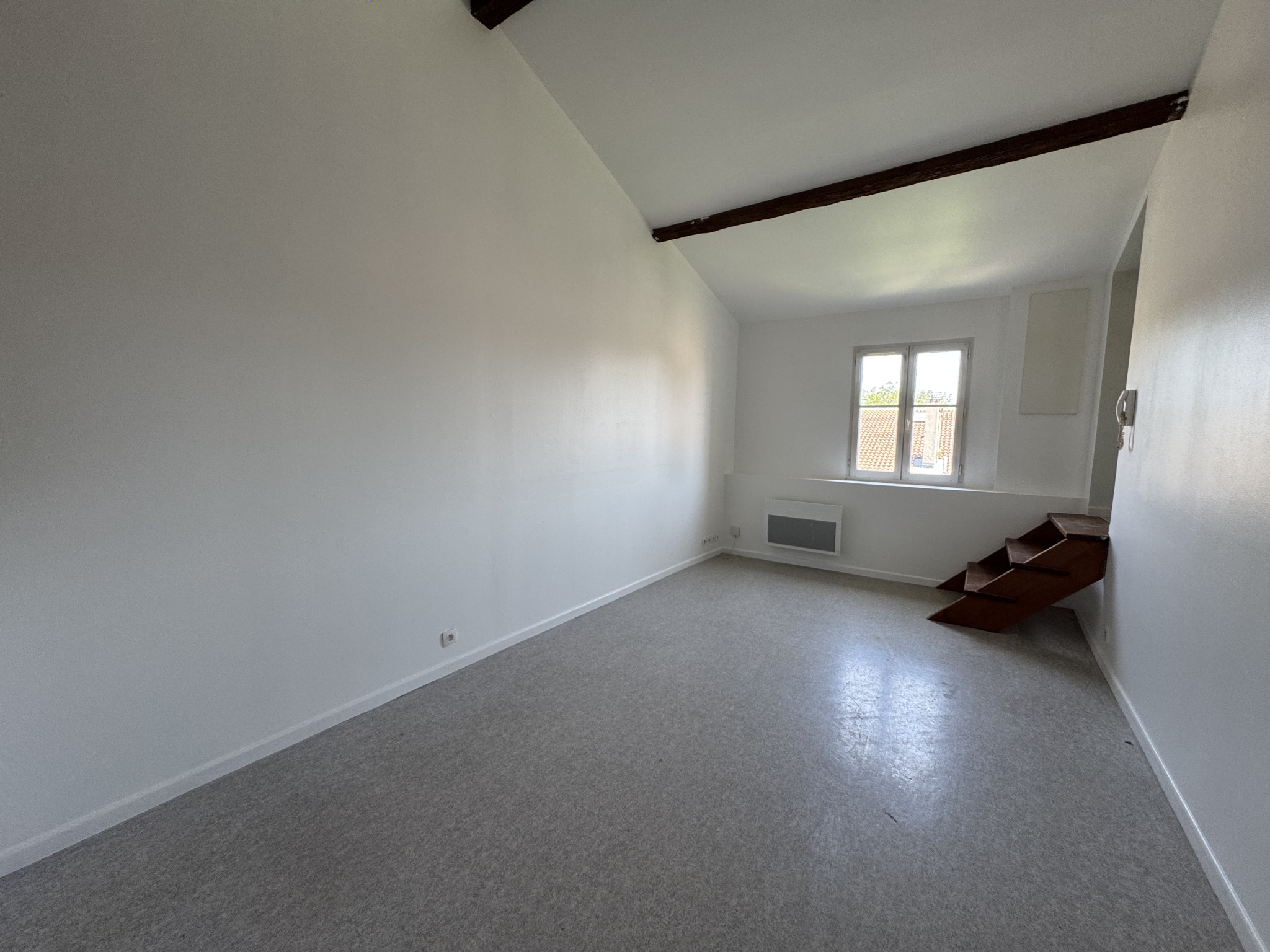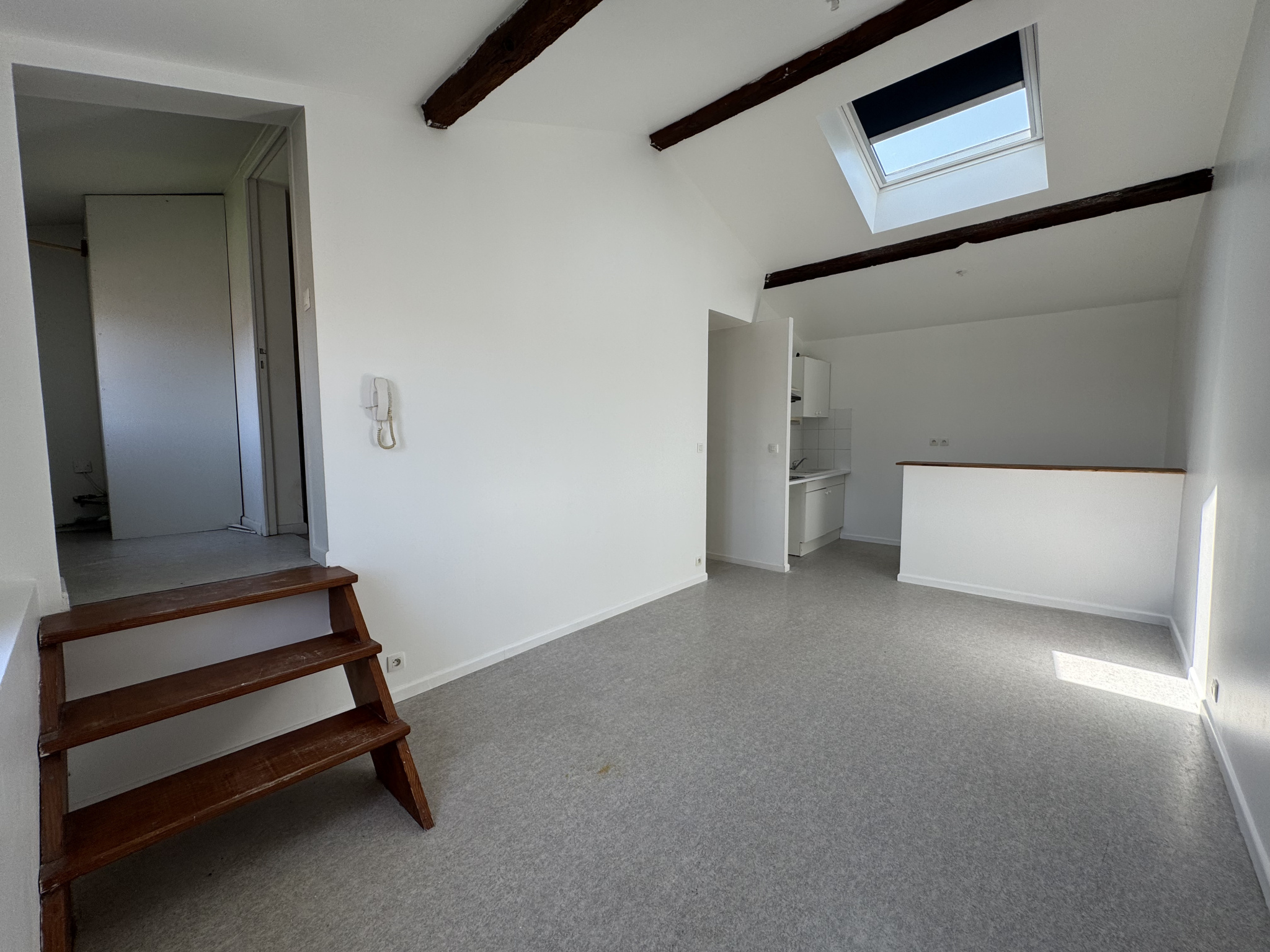 Appartement situé au premier étage composé d'un séjour/chambre, d'une cuisine, salle d'eau et toilettes séparées.