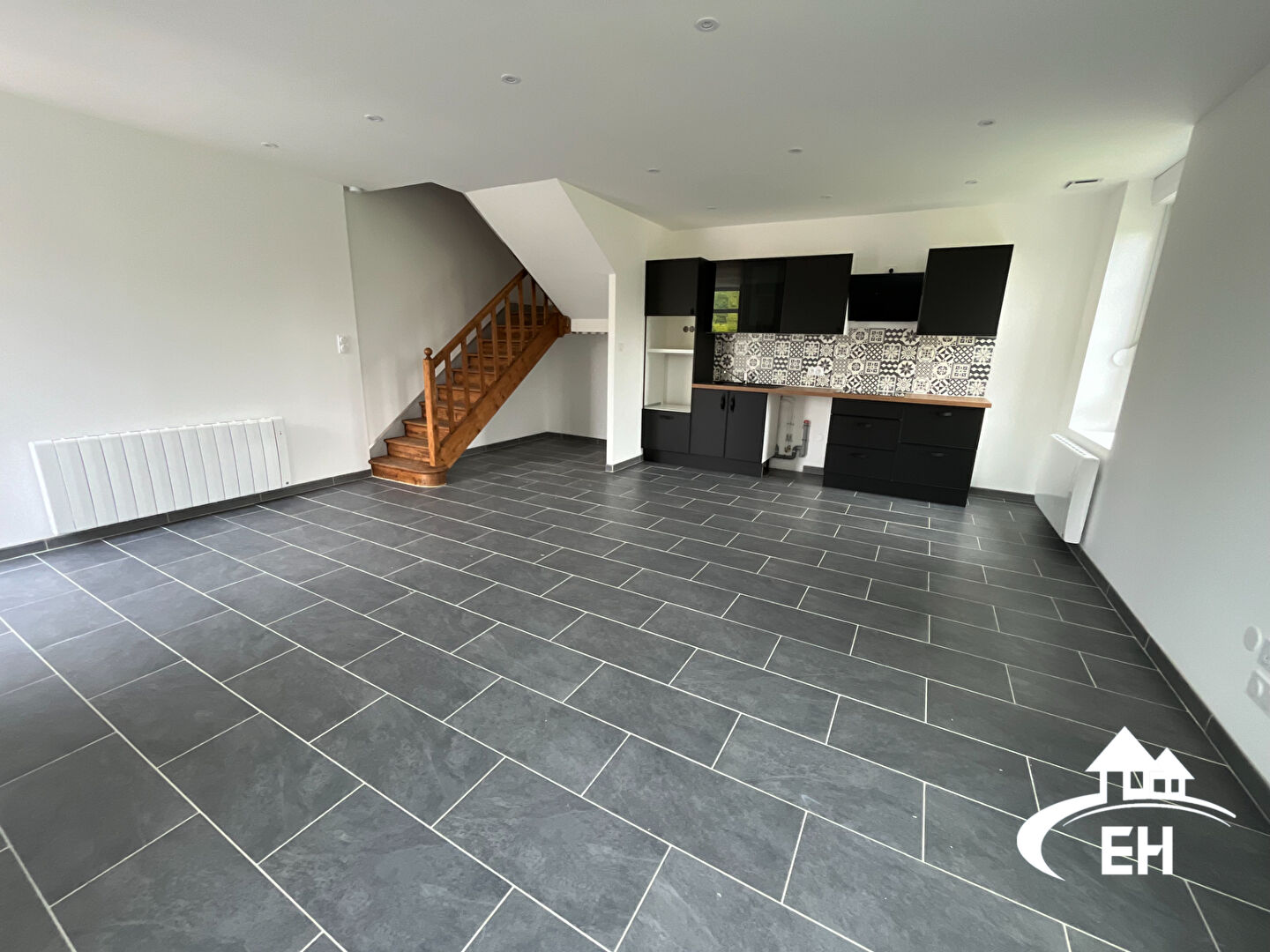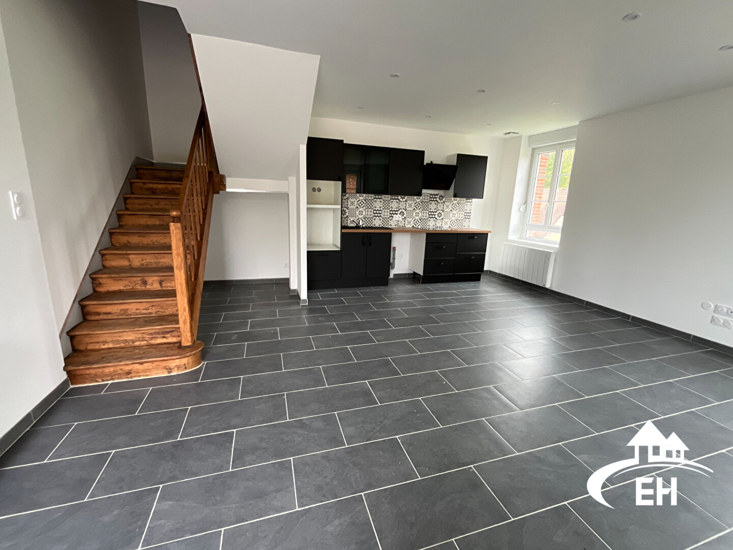 Maison de 94 m² comprenant au rez de chaussé une cuisine aménagée et équipée, grand séjour de 27m² et WC. A l'étage, salle d'eau avec WC séparé, trois chambres dont une chambre avec salle de bain. Courette gravillonnée. Chauffage électrique. LIBRE MI...