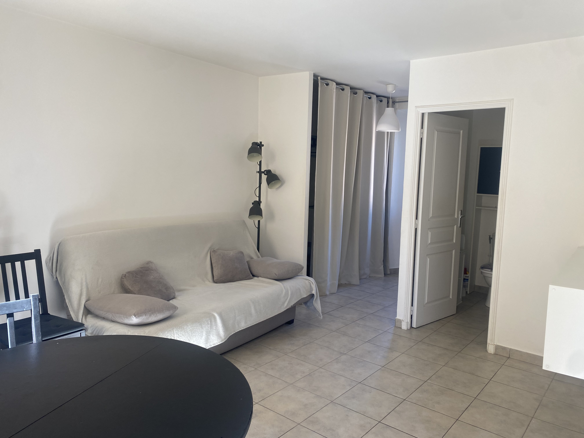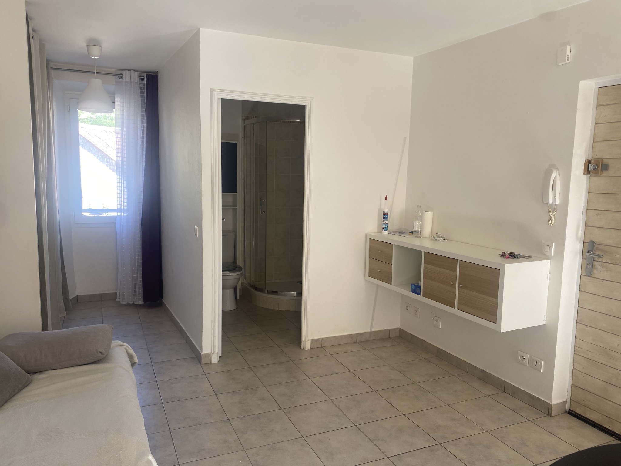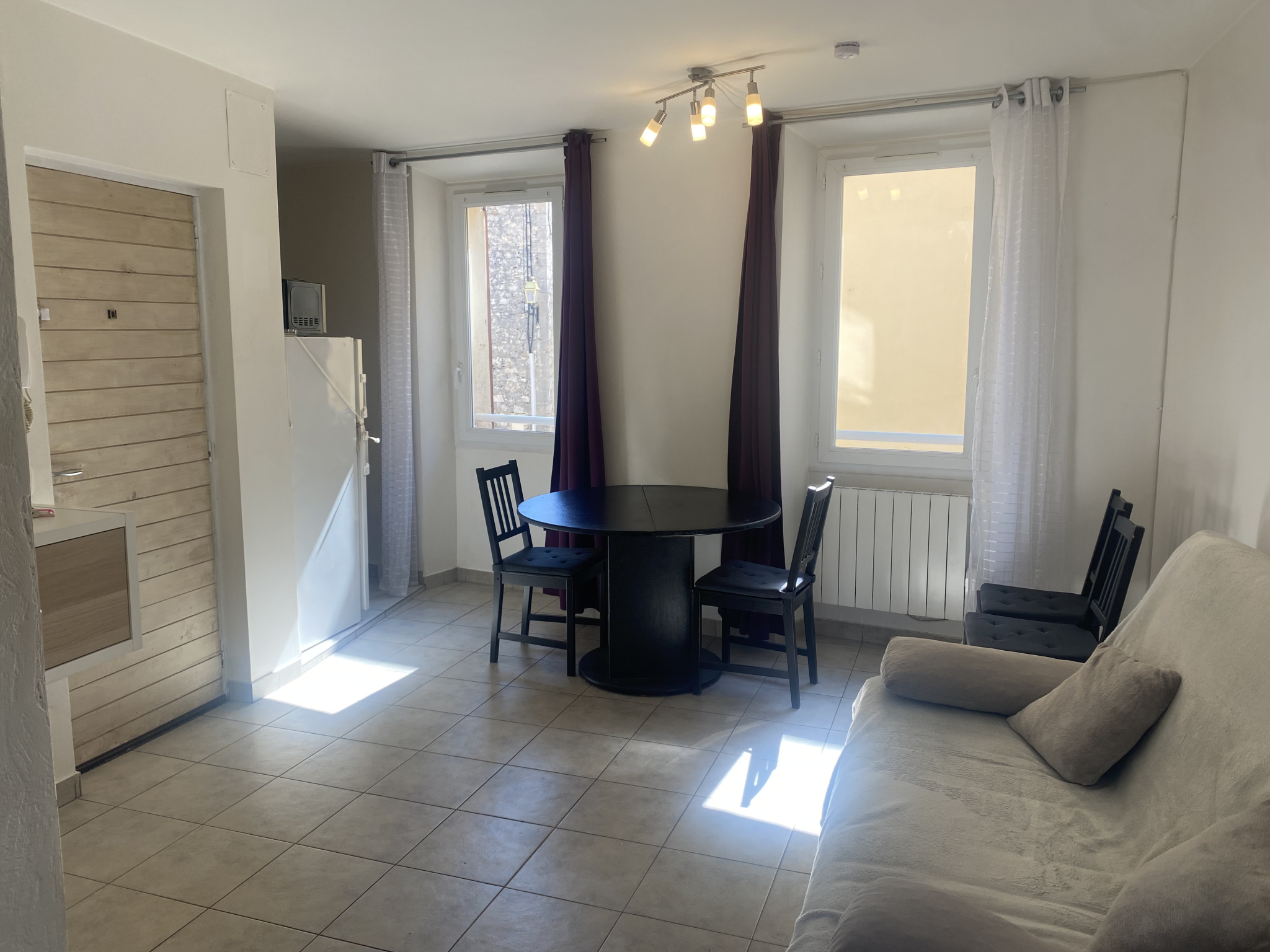 Au coeur du village, Très Joli Studio meublé : Entrée, Salon, coin cuisine équipé, salle d'eau avec Wc, Dressing