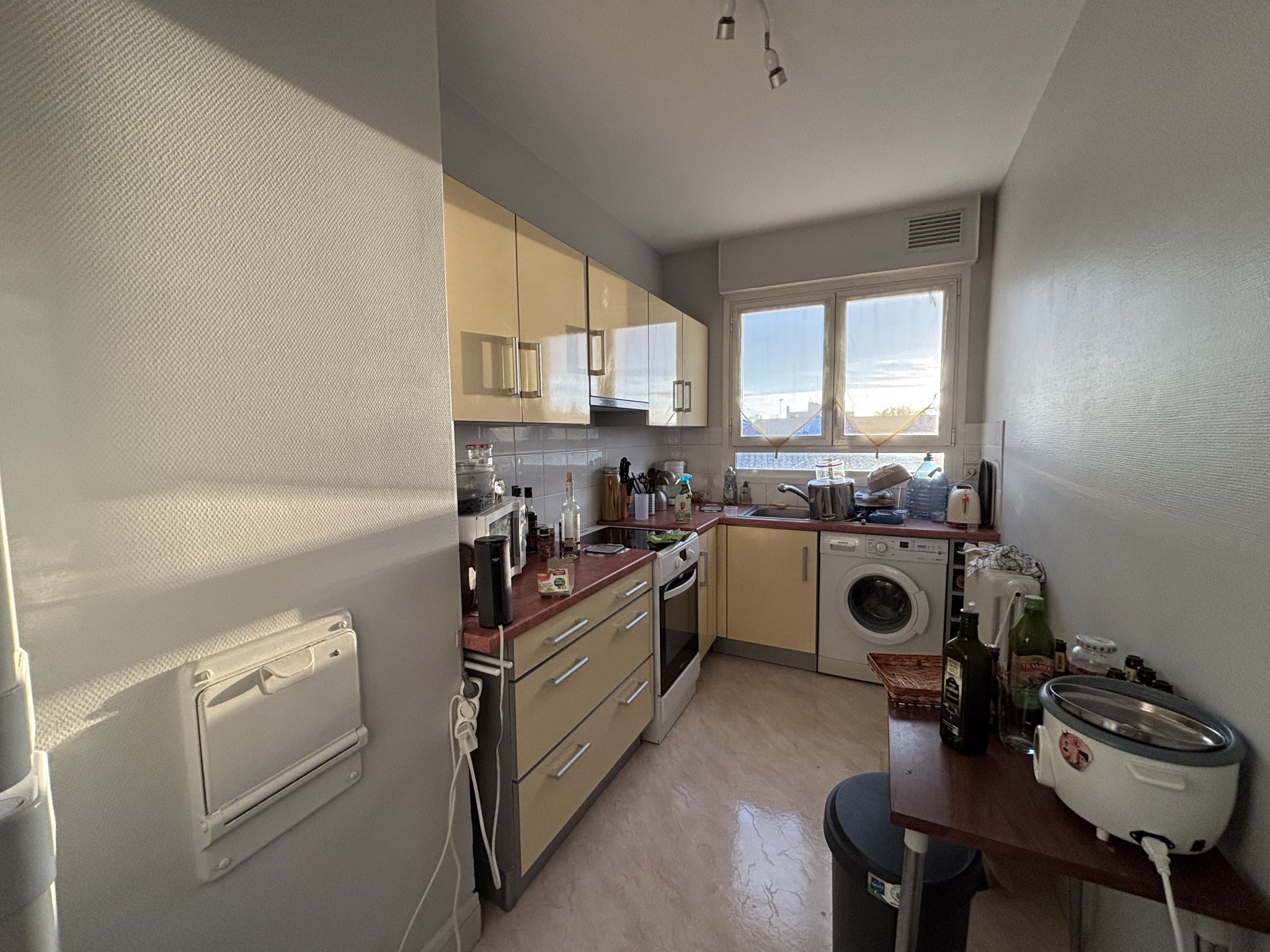 une entrée avec placard, un séjour avec placard, une cuisine séparée, une chambre avec placard,...
