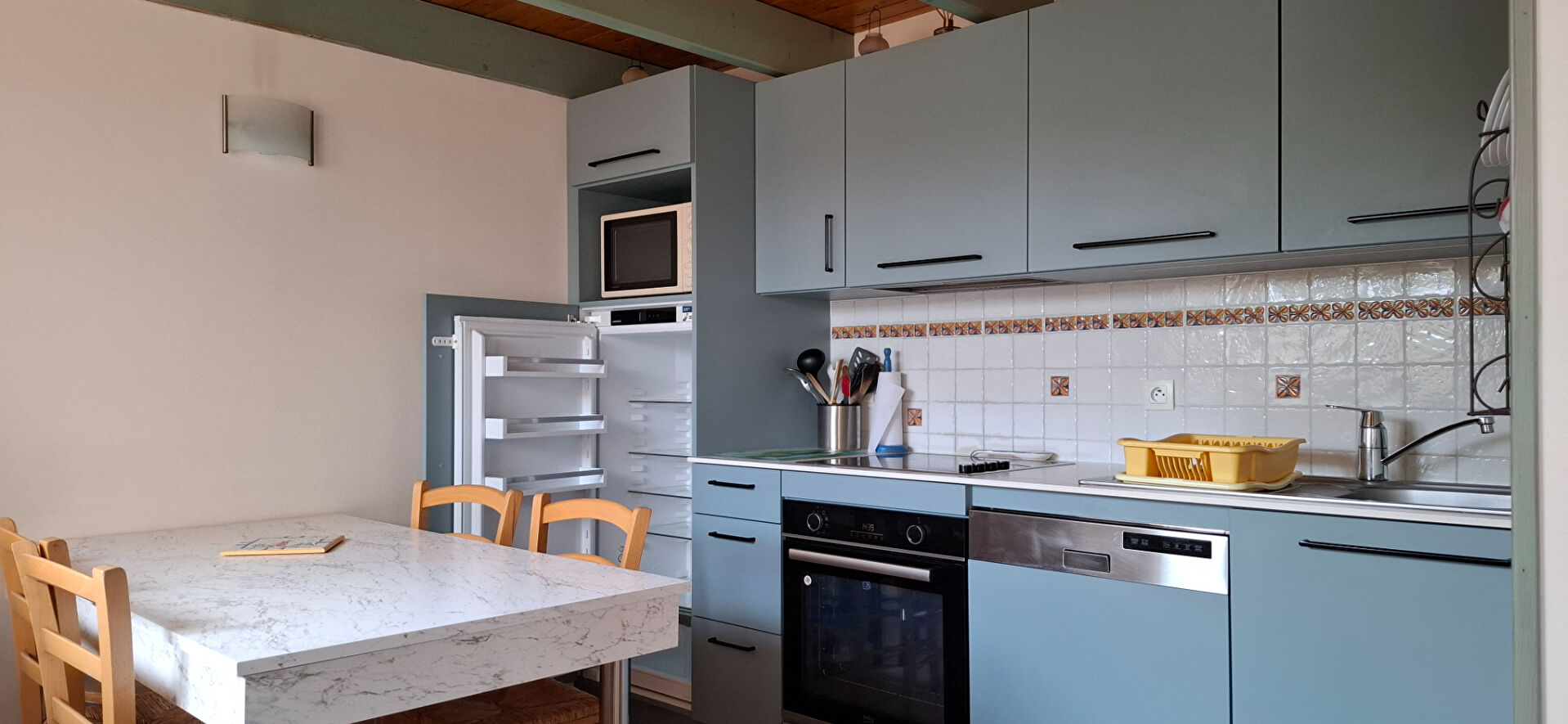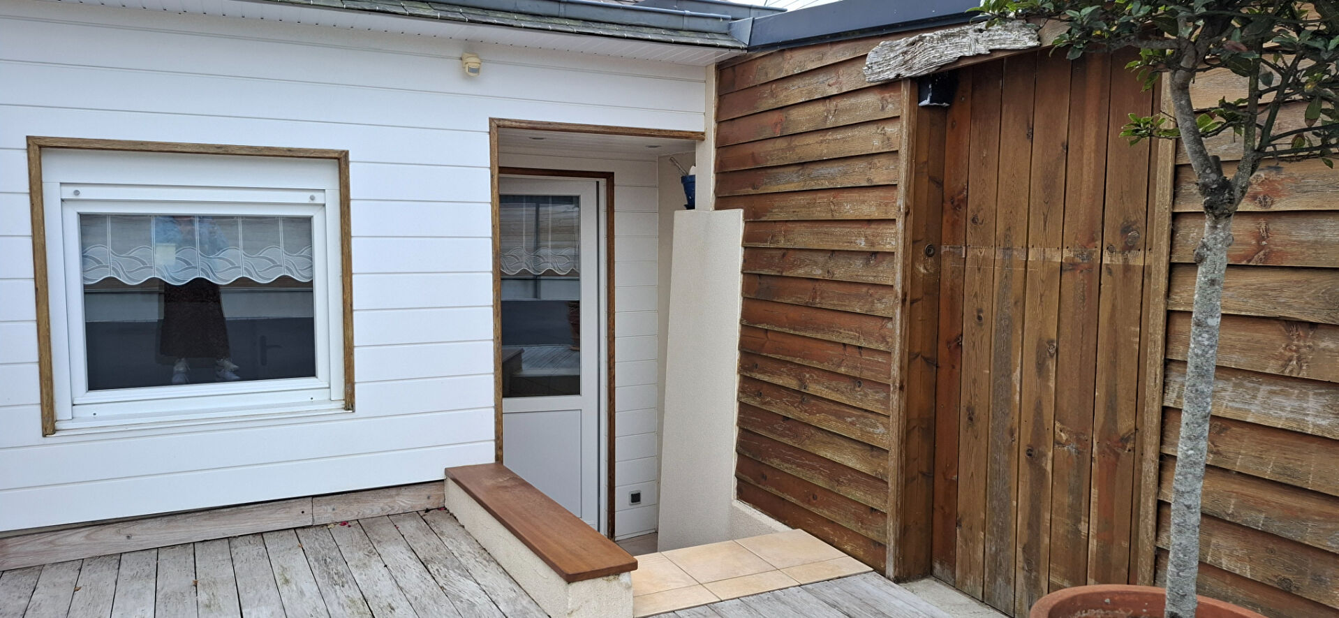 Belle pièce à vivre de 37 m², donnant sur une terrasse en bois, cuisine aménagée et équipée NE...