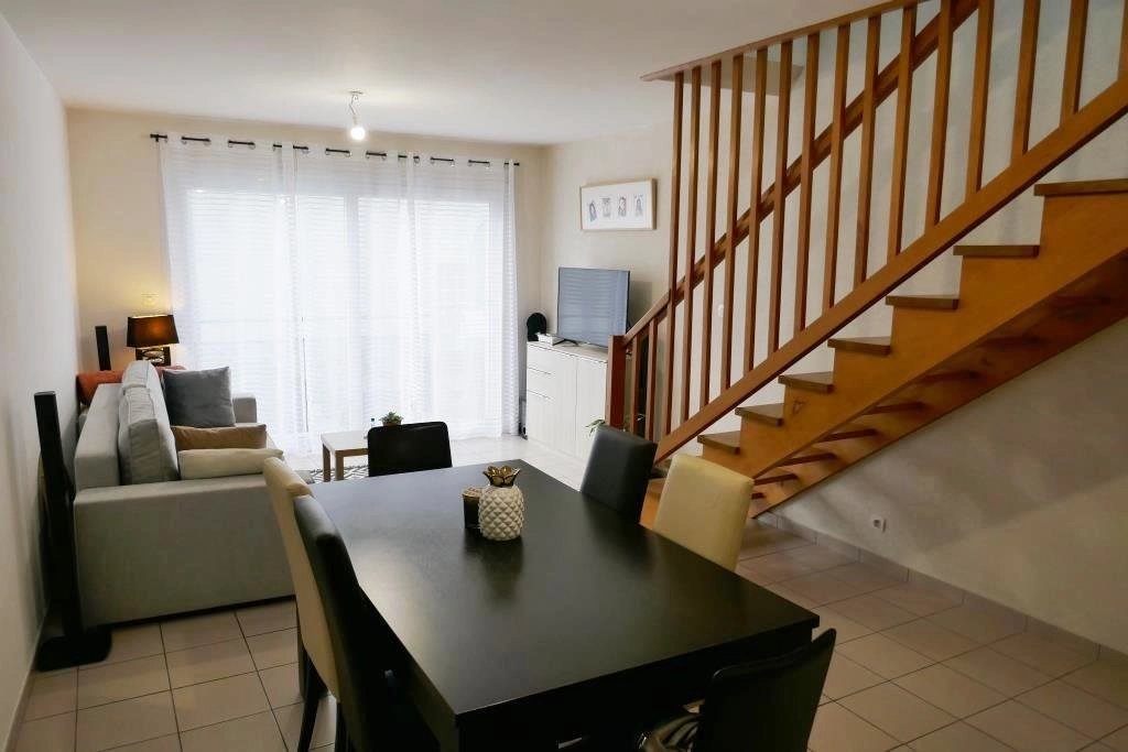 Comme dans une maison ce duplex de 70 m² offre un beau séjour lumineux de 33 m² avec un coin cuisine ouvert avec accès sur un large balcon.