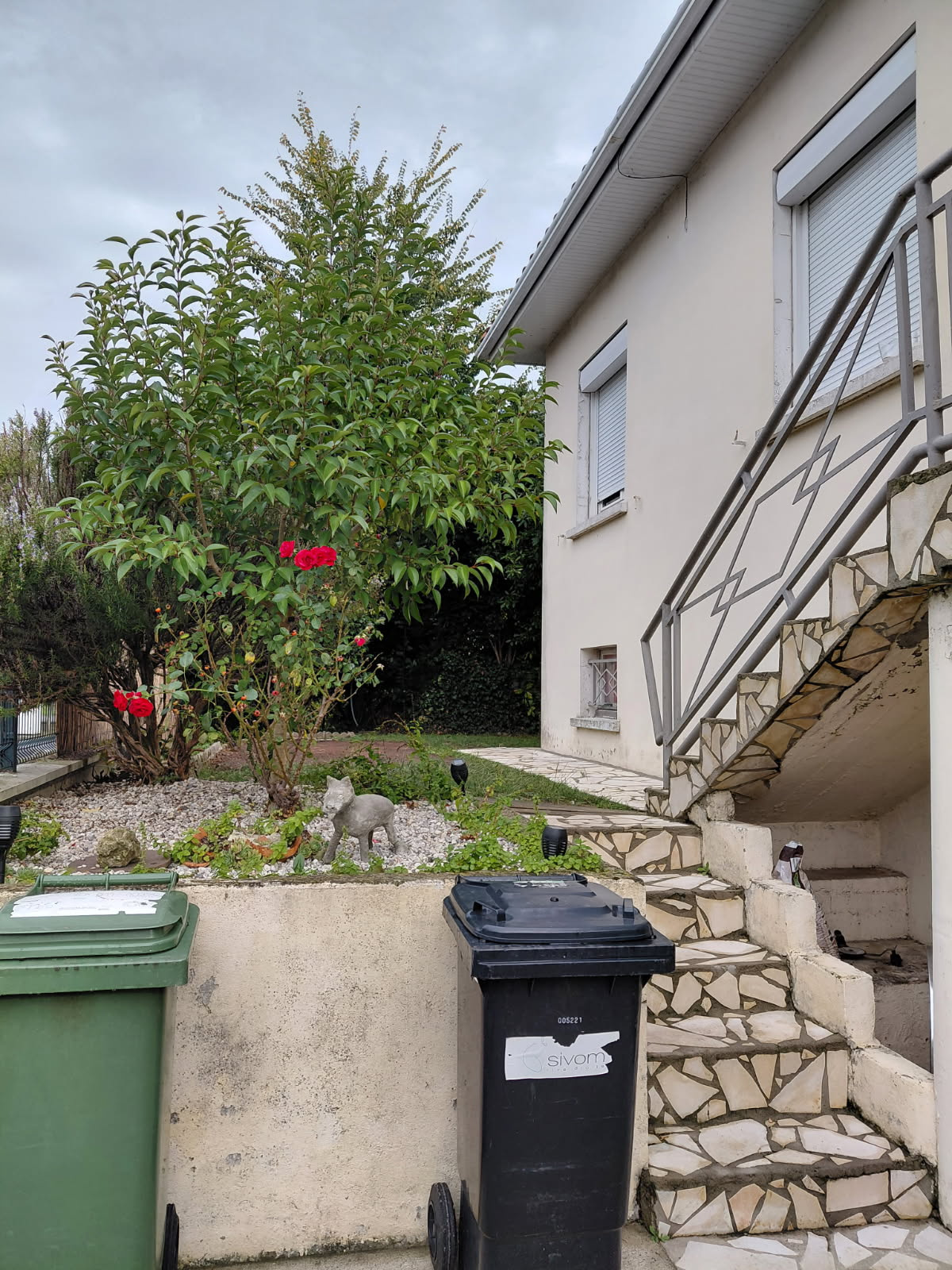 Maison des années 1970 élevé d'un rez-de-chaussée (grand garage avec bureau / coin machines à laver sécher) et à l'étage entrée, une cuisine entièrement équipée meubles bas et haut (avec tout l'électroménager de qualité) un séjour double, un cou...