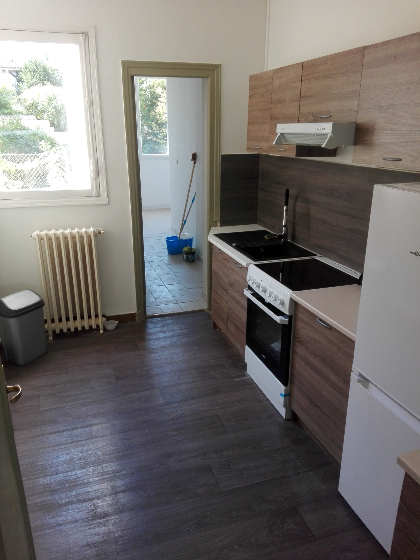 A louer, appartement entièrement rénové, situé dans une résidence calme et sécurisée, comprenant une entrée, un cellier, un séjour spacieux, une cuisine fermée non équipée et non aménagée, une salle de bain, un WC séparé et une grande chambre.