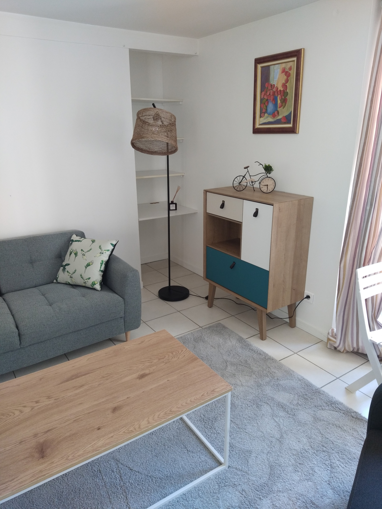 Appartement meublé en hyper centre, proche marché couvert de type f3 : deux chambres plus une avec mezzanine, une cuisine ouverte sur séjour, une salle d'eau et un wc séparé.