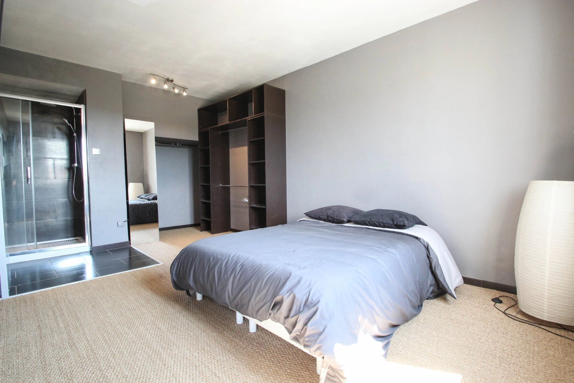 Mougins le Haut - Sur la place des Arcades, spacieux 2p meublé en dernier étage composé d'une pièce à vivre de 30m2 avec cuisine US équipée, une chambre avec dressing et salle de douche et un wc séparé.