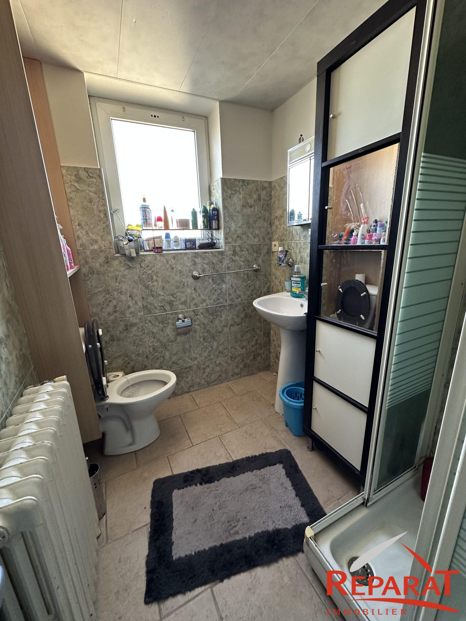 Appartement de type F3, au 2ème étage d'un immeuble situé en centre ville, comprenant une entrée, une cuisine, un séjour, 2 chambres, une salle de bain et un WC.