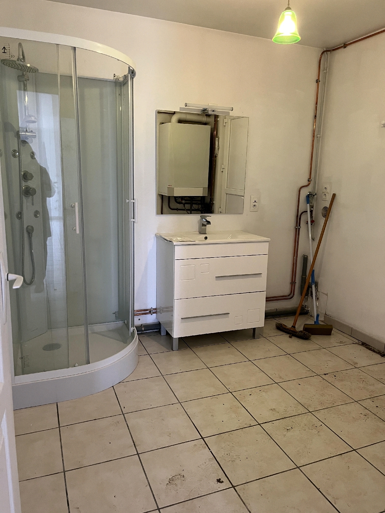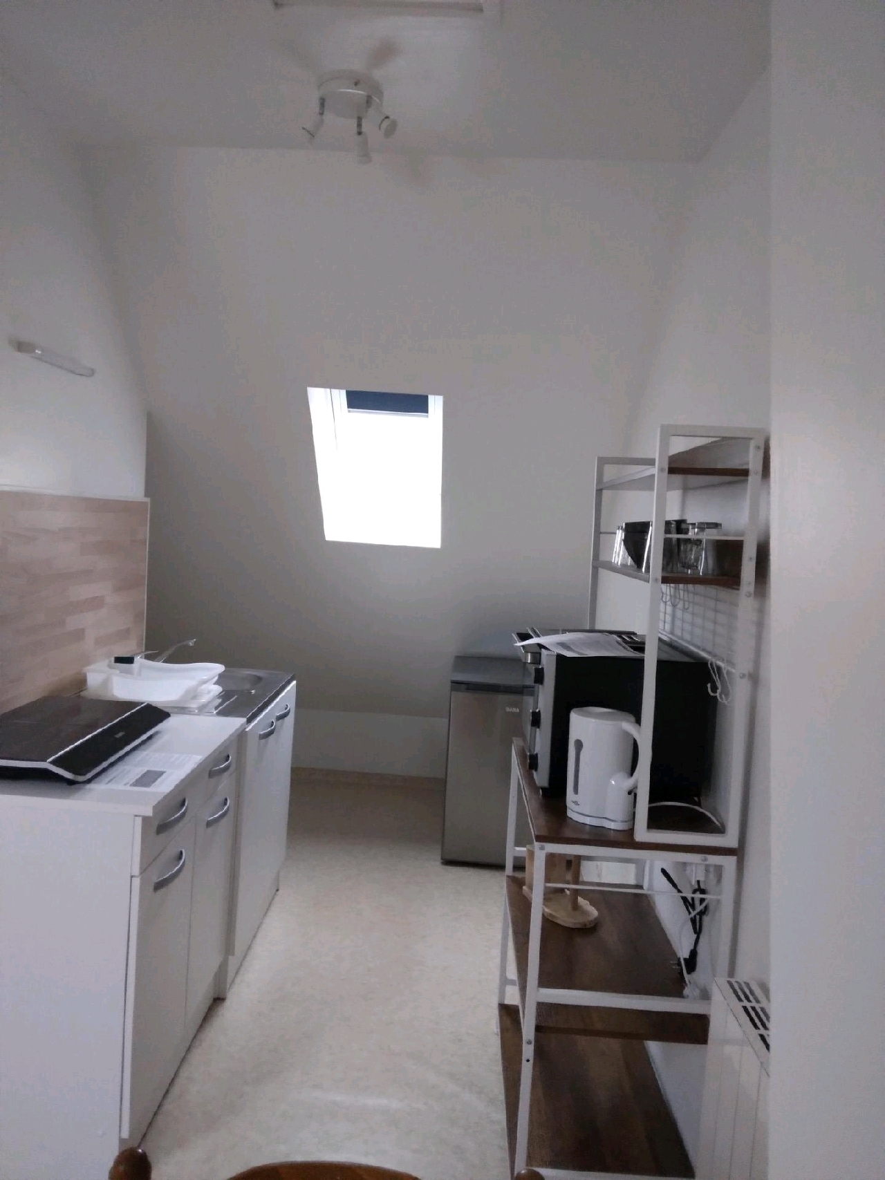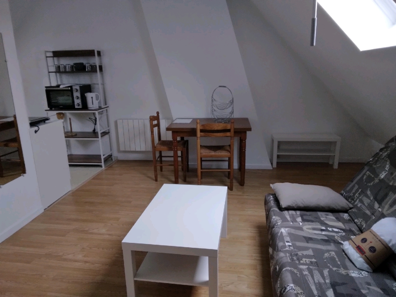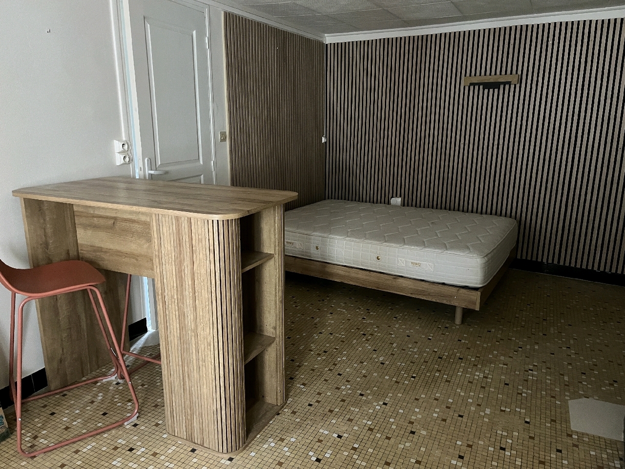 Au 2ème étage, proche centre ville, studio meublé avec salle d'eau et coin cuisine équipée. Chauffage électrique.