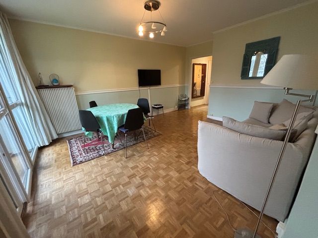 Rouen, rive sud, dans l'immeuble Normandie à proximité des quais, un très bel appartement de 90 M², comprenant grand séjour-salon parqueté plein sud, cuisine aménagée, 2 chambres, nombreux rangements, salle de bains, WC indépendant.