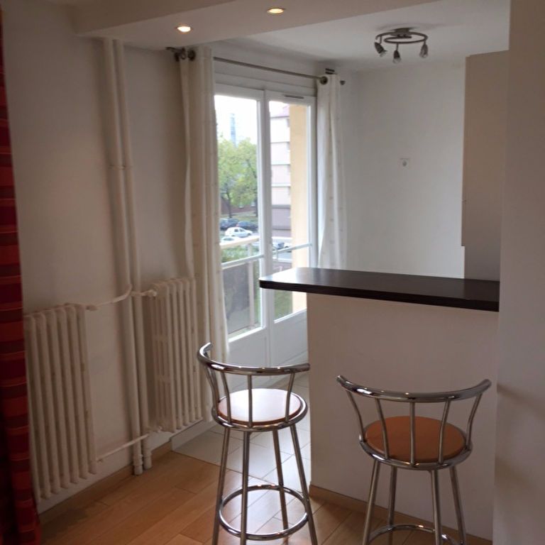 A proximité immédiate des commerces et des transports. Dans résidence, studio meublé avec coin cuisine équipé et salle de douche, placard. Loyer : 500 € charges et eau incluses. Laverie dans la résidence.